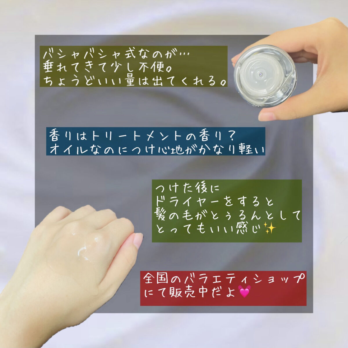 | ヘアケア・スタイリングランキング第23位 | いいオイル!ブリーチで傷んでる髪もまとまってくれる♡指通りサラサラ♡ | 詳細を見る | |