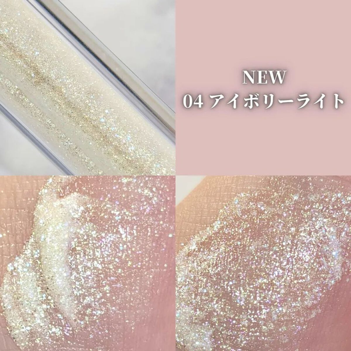 リキッドタイプのグリッターラメなんだけど、これめちゃくちゃ綺麗〜〜〜!😳🫶🏻 ラメが大きめで少し塗るだけでかなりの存在感! 04はこのシリーズの中だと少し小さめのラメなのでさらに韓国アイドルっぽい目元になりたい人は01~03番がおすすめ🫶🏻