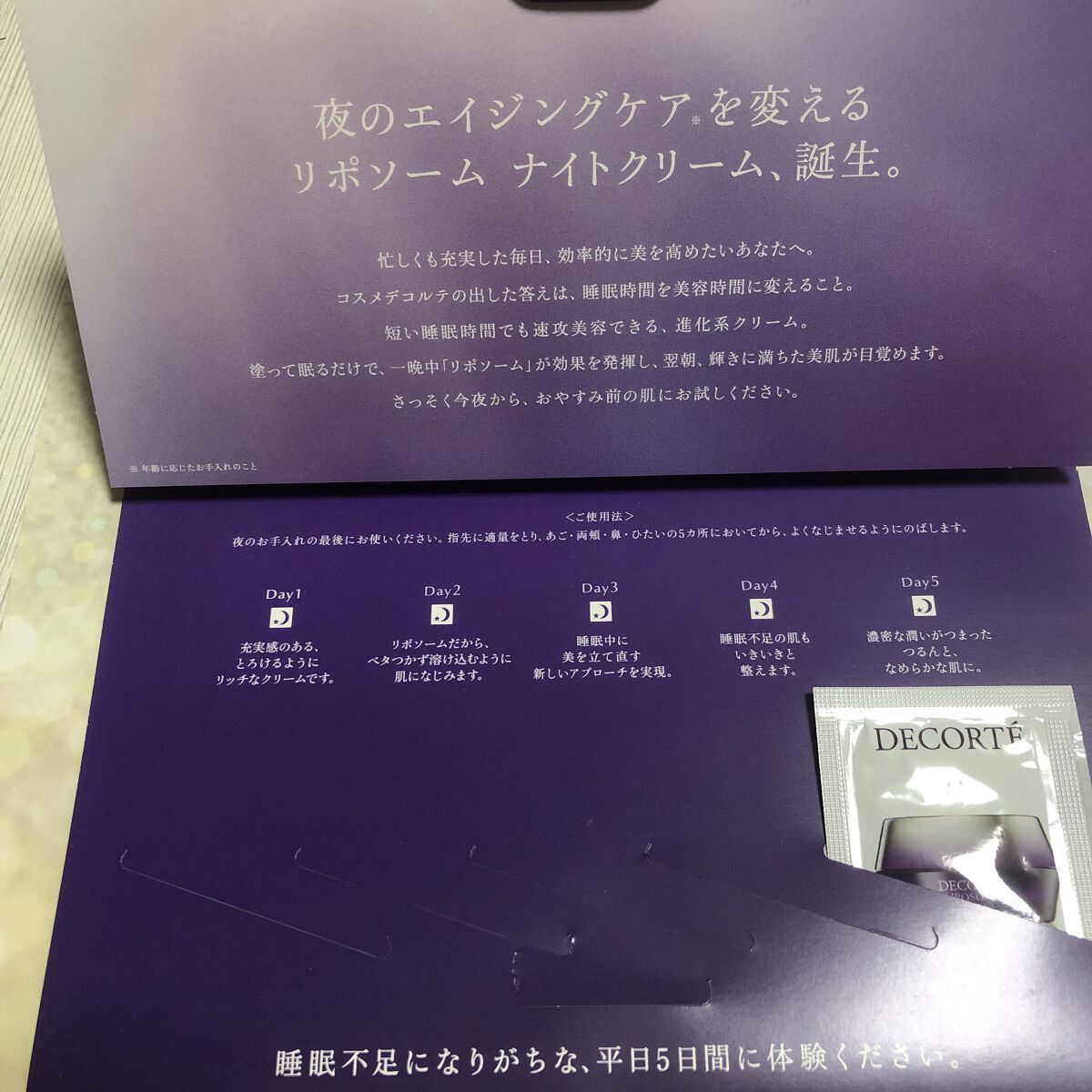 - 睡眠不足でも、3時間多く眠ったような肌へ。 美肌へのサイエンスを結集したカプセル、リポソーム。 その未知なる力を一途に研究し続けるコスメデコルテが、 新たな領域に到達しました。 睡眠中の美を高めるために開発された、1兆個※1のナイトカプセルが、肌をかけめぐりながら美を放ち肌の可能性を引き出す、まさしく、進化系ナイトクリーム。 どうしても短かくなりがちな睡眠時間も効果的に活用して、速攻美容できる、夜のエイジングケア※2です。 翌朝目覚める、ハリ・ツヤ・弾力。 そして、一日中いきいきとした輝きが続く。 夜を味方につけて、自信あふれる肌を手に入れてください。 ※1 1回の使用量1gとして算出(概算値) ※2 年齢に応じたお手入れのこと