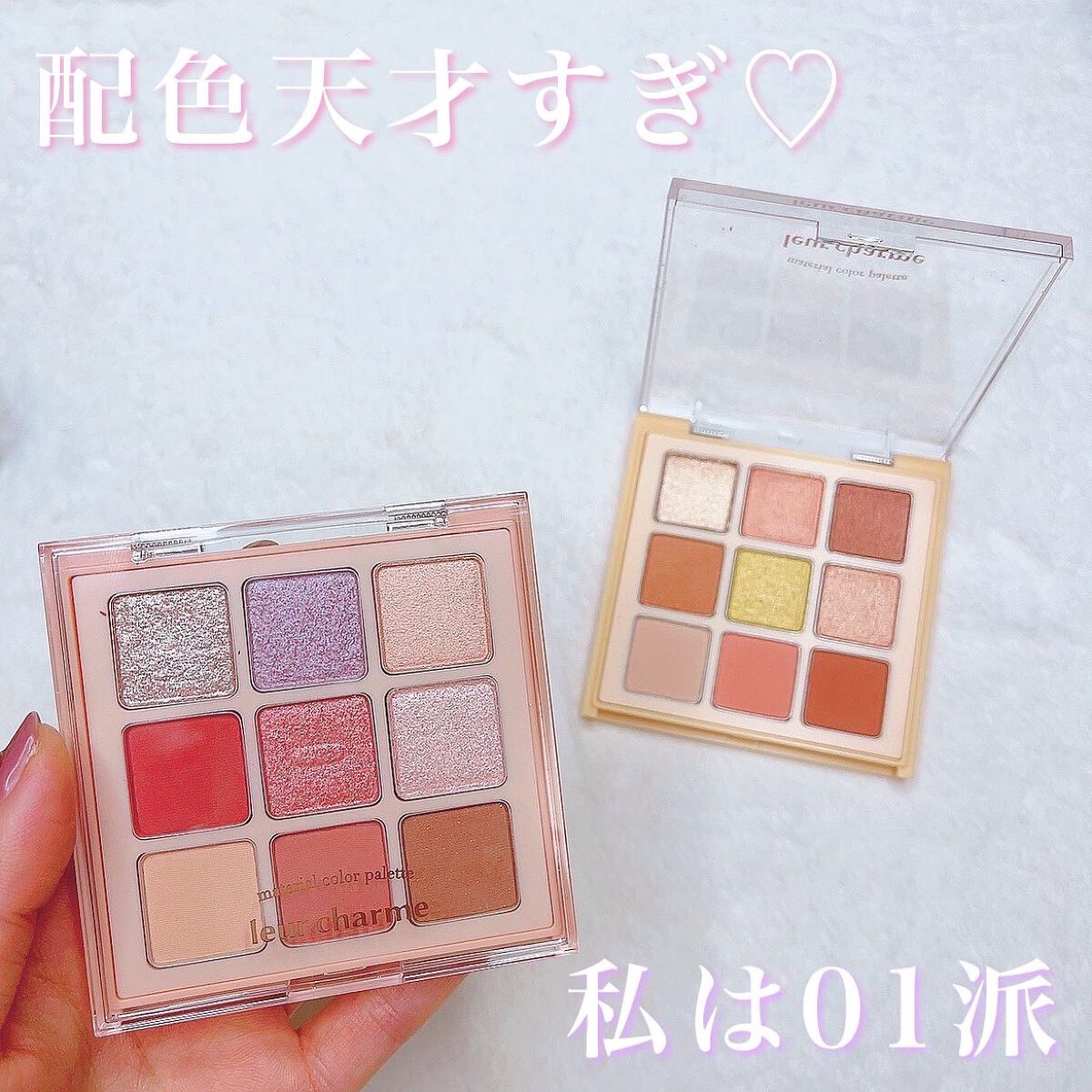 - 「ときめいて、私の瞳。」というキャッチフレーズの下、発色と質感にこだわった日本製9色アイシャドウパレット「leur charme material color palette(ルルシャルム マテリアルカラーパレット)」。2種展開で、どちらも個性的なカラーを入れつつ、絶妙な色合いやラメの使い方によって、パーソナルカラーにとらわれることなく好きな色を楽しめる構成となっています。