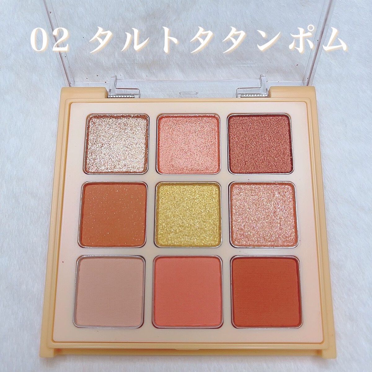 - 01 <a/f> ジメチコン、トリ(カプリル酸/カプリン酸)グリセリル、(ジメチコン/ビニルジメチコン) クロスポリマー、タルク、カルナウバロウ、クロルフェネシン、デヒドロ酢酸Na、ラウロイルリシン、トコフェロール、ホウケイ酸(Ca/Al)、マイカ、(PET/ポリメタクリル酸メチル)ラミネート、酸化チタン、酸化鉄、赤226、グンジョウ、酸化スズ <b/e> トリ(カプリル酸/カプリン酸)グリセリル、シリカ、ダイマージリノール酸ジ(イソステアリル/フィトステリル)、合成フルオロフロゴパイト、ダイマージリノール酸ダイマージリノレイルビス(ベヘニル/イソステアリル/フィトステリル)、水酸化Al、カルナウバロウ、トコフェロール、ホウケイ酸(Ca/Al)、マイカ、酸化チタン、酸化鉄、グンジョウ、赤226、コンジョウ、酸化スズ <c> アルミナ、合成フルオロフロゴパイト、タルク、ジフェニルシロキシフェニルトリメチコン、水添ポリデセン、(イソステアリン酸ポリグリセリル-2/ダイマージリノール酸)コポリマー、ジメチコン、硫酸Ba、ジステアリン酸Al、クロルフェネシン、デヒドロ酢酸Na、ステアリン酸Mg、トコフェロール、酸化チタン、マイカ、酸化鉄、グンジョウ、酸化スズ <d/g/h/i> タルク、合成フルオロフロゴパイト、窒化ホウ素、スクワラン、ナイロン-12、(ビニルジメチコン/メチコンシルセスキオキサン)クロスポリマー、ペンチレングリコール、ホホバ種子油、デヒドロ酢酸Na、水酸化Al、シア脂、トコフェロール、マイカ、酸化鉄、酸化チタン、赤226、グンジョウ、ホウケイ酸(Ca/Al)、酸化スズ 02 <a> ジメチコン、トリ(カプリル酸/カプリン酸)グリセリル、(ジメチコン/ビニルジメチコン)クロスポリマー、タルク、カルナウバロウ、クロルフェネシン、デヒドロ酢酸Na、ラウロイルリシン、トコフェロール、マイカ、ホウケイ酸(Ca/Al)、酸化チタン、酸化鉄、酸化スズ <b> アルミナ、タルク、合成フルオロフロゴパイト、ジフェニルシロキシフェニルトリメチコン、水添ポリデセン、(イソステアリン酸ポリグリセリル-2/ダイマージリノール酸)コポリマー、ジメチコン、硫酸Ba、ジステアリン酸Al、ステアリン酸Mg、クロルフェネシン、デヒドロ酢酸Na、トコフェロール、酸化チタン、マイカ、酸化鉄、赤226、グンジョウ、酸化スズ <c/e/f> トリ(カプリル酸/カプリン酸)グリセリル、シリカ、ダイマージリノール酸ジ(イソステアリル/フィトステリル)、ダイマージリノール酸ダイマージリノレイルビス(ベヘニル/イソステアリル/フィトステリル)、水酸化Al、合成フルオロフロゴパイト、カルナウバロウ、トコフェロール、マイカ、ホウケイ酸(Ca/Al)、酸化チタン、酸化鉄、黄4、赤226、グンジョウ、酸化スズ <d/g/h/i> タルク、合成フルオロフロゴパイト、窒化ホウ素、スクワラン、ナイロン-12、(ビニルジメチコン/メチコンシルセスキオキサン)クロスポリマー、ペンチレングリコール、ホホバ種子油、デヒドロ酢酸Na、水酸化Al、シア脂、トコフェロール、マイカ、酸化鉄、酸化チタン、ホウケイ酸(Ca/Al)、赤226、黄4、グンジョウ、酸化スズ ※アルファベットはパレットを正面から見た1段目左からabc、2段目左からdef、3段目左からghiの順です。