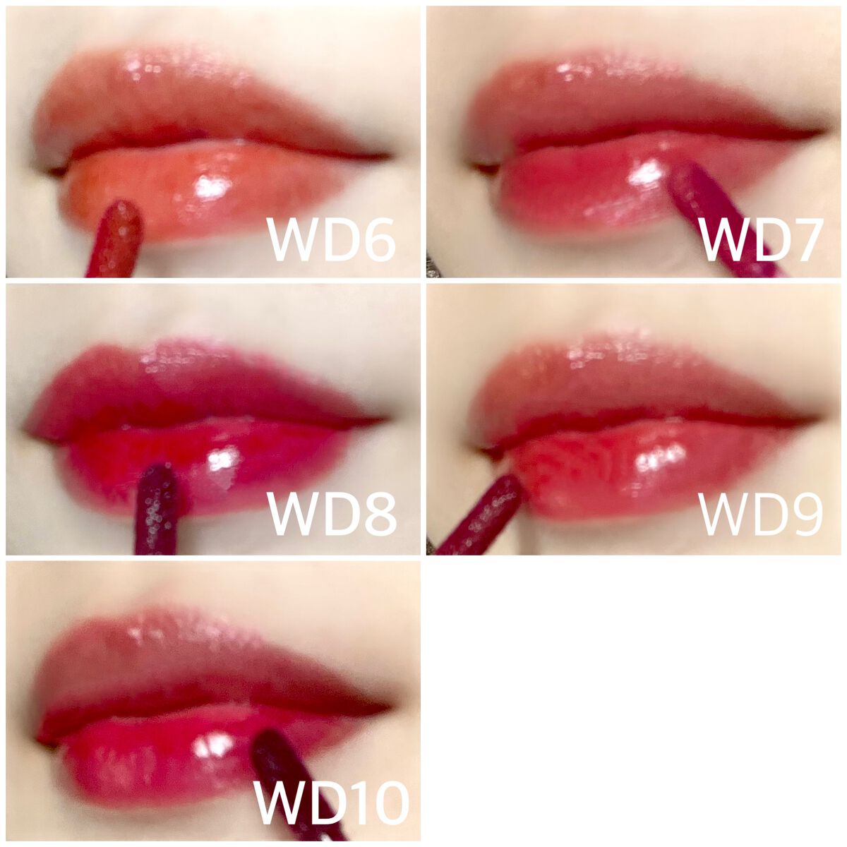 - <WD2 ビトゥン ローズ> 水、ジフェニルジメチコン、リンゴ酸ジイソステアリル、ビスジグリセリルポリアシルアジペート-2、水添ポリイソブテン、ジグリセリン、DPG、セチルPEG/PPG-10/1ジメチコン、イソステアリン酸ソルビタン、ポリソルベート60、ペンチレングリコール、オクチルドデカノール、セテアレス-20、(アクリル酸ヒドロキシエチル/アクリロイルジメチルタウリンNa)コポリマー、スクワラン、フェノキシエタノール、ポリグリセリン-3、ステビオシド、香料、エチルヘキシルグリセリン、グリセリン、シア脂、ツバキ種子油、トリ(カプリル酸/カプリン酸)グリセリル、アルガニアスピノサ核油、ホホバ種子油、アーモンド油、アンズ核油、月見草油、オリーブ果実油、テトラ(ジ-t-ブチルヒドロキシヒドロケイヒ酸)ペンタエリスリチル、カニナバラ果実エキス、マンゴー果実エキス、赤104(1)、赤227、黄5、青1 <WD3 ピンク ヘイズ> 水、ジフェニルジメチコン、リンゴ酸ジイソステアリル、ビスジグリセリルポリアシルアジペート-2、水添ポリイソブテン、ジグリセリン、DPG、セチルPEG/PPG-10/1ジメチコン、イソステアリン酸ソルビタン、ポリソルベート60、ペンチレングリコール、オクチルドデカノール、セテアレス-20、(アクリル酸ヒドロキシエチル/アクリロイルジメチルタウリンNa)コポリマー、スクワラン、フェノキシエタノール、ポリグリセリン-3、ステビオシド、香料、エチルヘキシルグリセリン、グリセリン、水酸化Al、ポリアクリル酸アンモニウム、BG、アルガニアスピノサ核油、シア脂、ツバキ種子油、トリ(カプリル酸/カプリン酸)グリセリル、アーモンド油、アンズ核油、ホホバ種子油、月見草油、オリーブ果実油、テトラ(ジ-t-ブチルヒドロキシヒドロケイヒ酸)ペンタエリスリチル、マンゴー果実エキス、カニナバラ果実エキス、酸化チタン、赤104(1)、赤227、黄5、青1 <WD4 オールウェイズ ヤング> 水、ジフェニルジメチコン、リンゴ酸ジイソステアリル、ビスジグリセリルポリアシルアジペート-2、水添ポリイソブテン、ジグリセリン、DPG、セチルPEG/PPG-10/1ジメチコン、イソステアリン酸ソルビタン、ポリソルベート60、ペンチレングリコール、オクチルドデカノール、セテアレス-20、(アクリル酸ヒドロキシエチル/アクリロイルジメチルタウリンNa)コポリマー、スクワラン、フェノキシエタノール、ポリグリセリン-3、ステビオシド、香料、エチルヘキシルグリセリン、グリセリン、シア脂、ツバキ種子油、トリ(カプリル酸/カプリン酸)グリセリル、アルガニアスピノサ核油、ホホバ種子油、アーモンド油、アンズ核油、月見草油、オリーブ果実油、テトラ(ジ-t-ブチルヒドロキシヒドロケイヒ酸)ペンタエリスリチル、カニナバラ果実エキス、マンゴー果実エキス、赤104(1)、赤227、黄5、青1 <WD6 クラッシュド パンプキン> 水、水添ポリイソブテン、リンゴ酸ジイソステアリル、ビスジグリセリルポリアシルアジペート-2、ジフェニルシロキシフェニルトリメチコン、ジフェニルジメチコン、ポリグリセリン-3、オクチルドデカノール、ポリソルベート60、セチルPEG/PPG-10/1ジメチコン、ラウリン酸ポリグリセリル-10、ペンチレングリコール、1,2-ヘキサンジオール、(アクリル酸ヒドロキシエチル/アクリロイルジメチルタウリンNa)コポリマー、PEG-60水添ヒマシ油、セテアリルアルコール、スクワラン、キシリトール、エチルヘキシルグリセリン、香料、ポリアクリル酸アンモニウム、イソステアリン酸ソルビタン、水酸化Al、フェノキシエタノール、BG、トコフェロール、酸化チタン、酸化鉄、赤227、黄4、黄5、青1 <WD8 ビンテージ カラント> 水、水添ポリイソブテン、リンゴ酸ジイソステアリル、ビスジグリセリルポリアシルアジペート-2、ジフェニルシロキシフェニルトリメチコン、ジフェニルジメチコン、オクチルドデカノール、ポリグリセリン-3、ポリソルベート60、セチルPEG/PPG-10/1ジメチコン、ラウリン酸ポリグリセリル-10、1,2-ヘキサンジオール、ペンチレングリコール、(アクリル酸ヒドロキシエチル/アクリロイルジメチルタウリンNa)コポリマー、PEG-60水添ヒマシ油、セテアリルアルコール、スクワラン、キシリトール、エチルヘキシルグリセリン、香料、イソステアリン酸ソルビタン、トコフェロール、赤104(1)、赤227、黄5、青1 <WD9 ミスター ストレンジャー> 水、水添ポリイソブテン、リンゴ酸ジイソステアリル、ビスジグリセリルポリアシルアジペート-2、ジフェニルシロキシフェニルトリメチコン、ジフェニルジメチコン、オクチルドデカノール、ポリグリセリン-3、ポリソルベート60、セチルPEG/PPG-10/1ジメチコン、ラウリン酸ポリグリセリル-10、1,2-ヘキサンジオール、ペンチレングリコール、(アクリル酸ヒドロキシエチル/アクリロイルジメチルタウリンNa)コポリマー、セテアリルアルコール、PEG-60水添ヒマシ油、スクワラン、キシリトール、エチルヘキシルグリセリン、香料、イソステアリン酸ソルビタン、水酸化Al、ポ