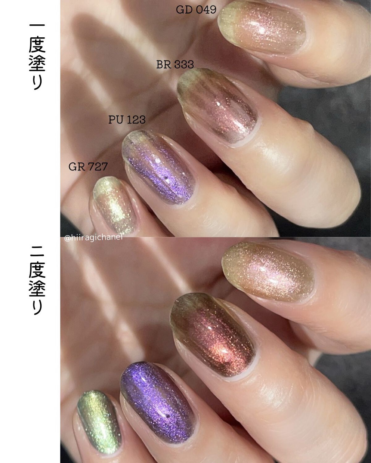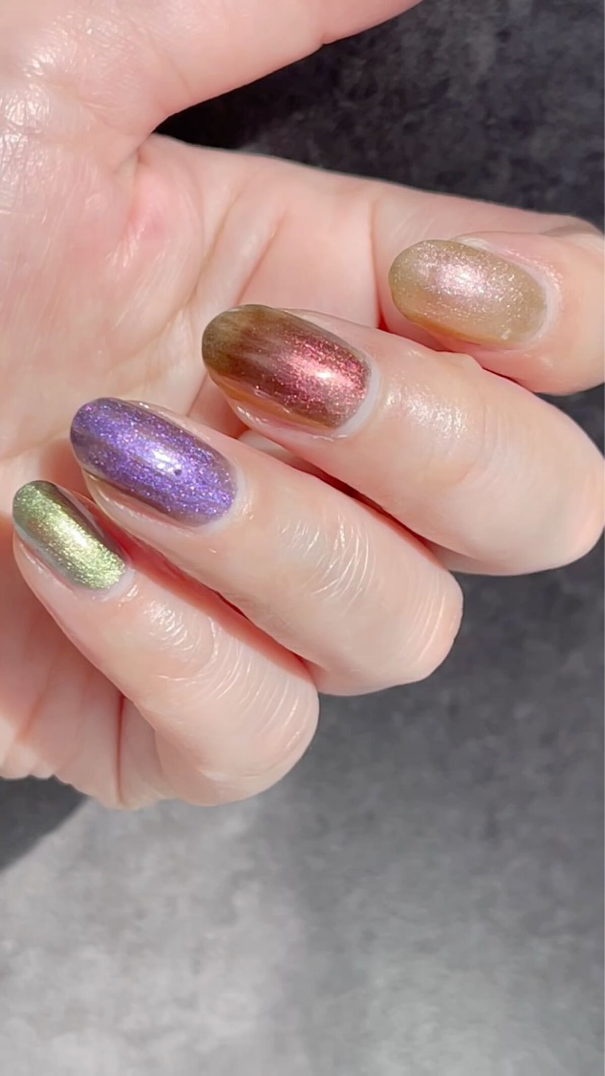 こんにちは🎵ポリッシュでもジェルのように偏光するカラーが増えましたね😍👍 赤色が好みです💕