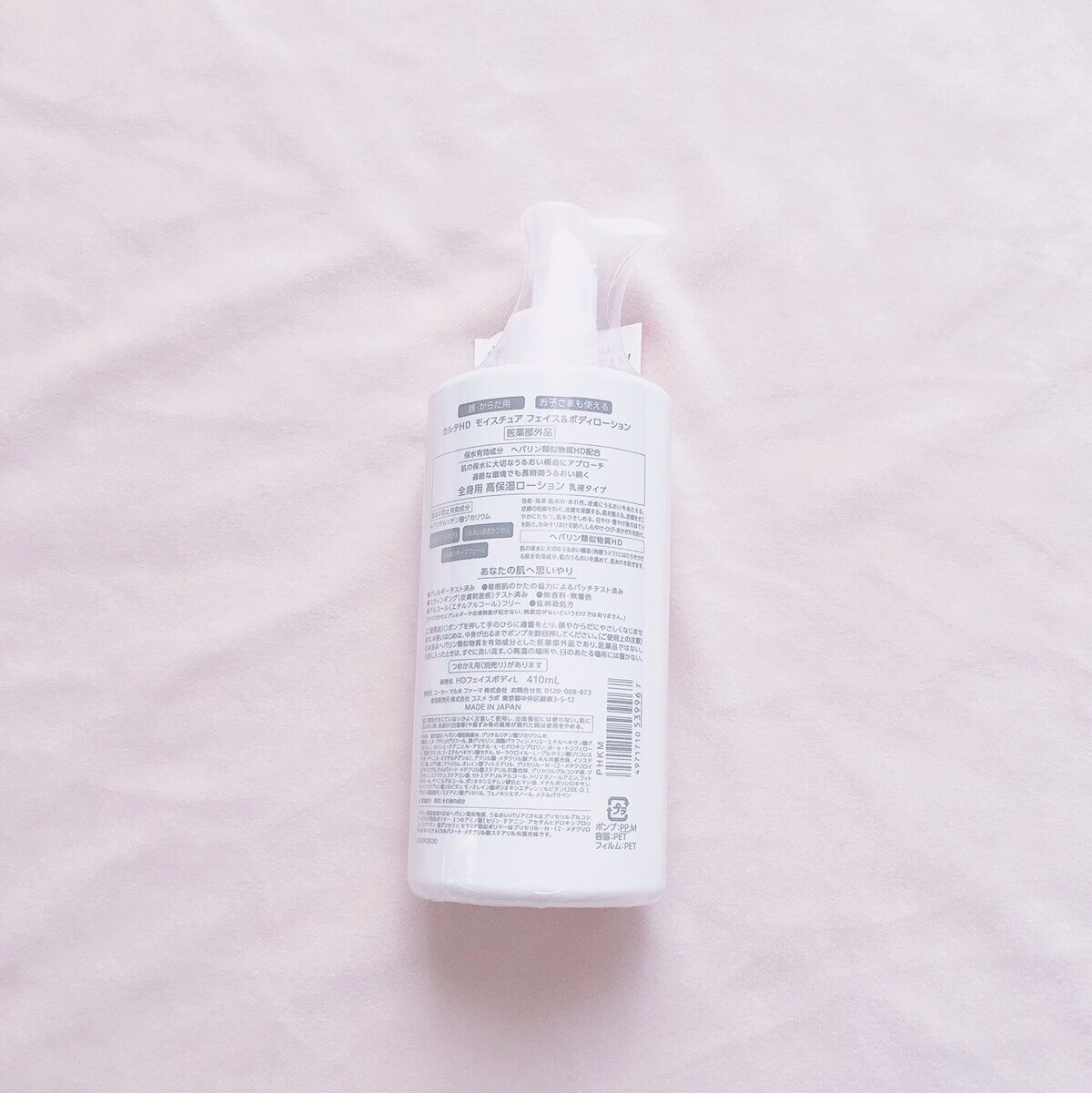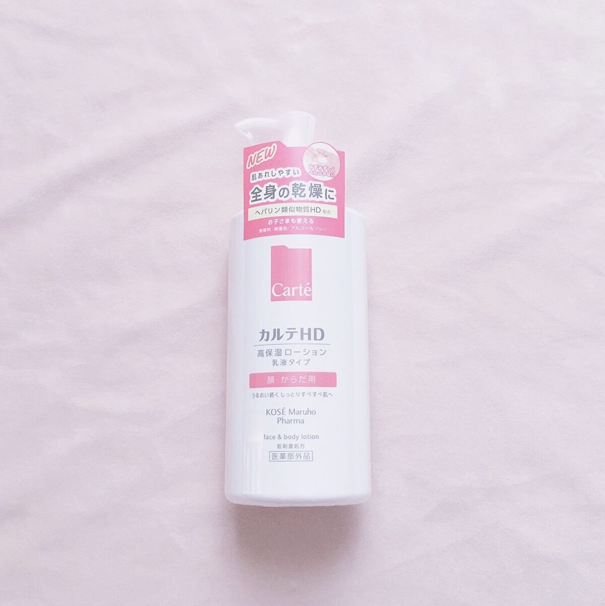 - 【高保湿フェイス&ボディローション】 顔にもからだにも。しっとりやわらか肌つづく。 信頼の保水有効成分「ヘパリン類似物質HD※」配合、低刺激処方の高機能フェイス&ボディローションです。 ヘパリン類似物質HDが、気温・湿度の変化で乾燥しやすいからだの肌のうるおい構造(角層ラメラ)を立て直し、しっとりやわらか肌に導きます。 2種のこだわりオイル配合で、しっとりするのにべたつかず、なめらかにのびひろがる使用感。敏感な肌でもまさつによるストレスがなく、全身をうるおいで満たします。 カルテHDシリーズとしては初めてお子さま(3歳以上)にもお使いいただける商品。 ・ボトルタイプ(220mL) ・ポンプタイプ(410mL) ・つめかえ用(370mL)の3種でラインアップ。 ご自身の保湿に、ご家族や大切なかたの保湿に。みずみずしくなめらかなうるおいが全身を包み込むフェイス&ボディローションです。 ※保水有効成分ヘパリン類似物質のこと <販売名:HD フェイスボディL>