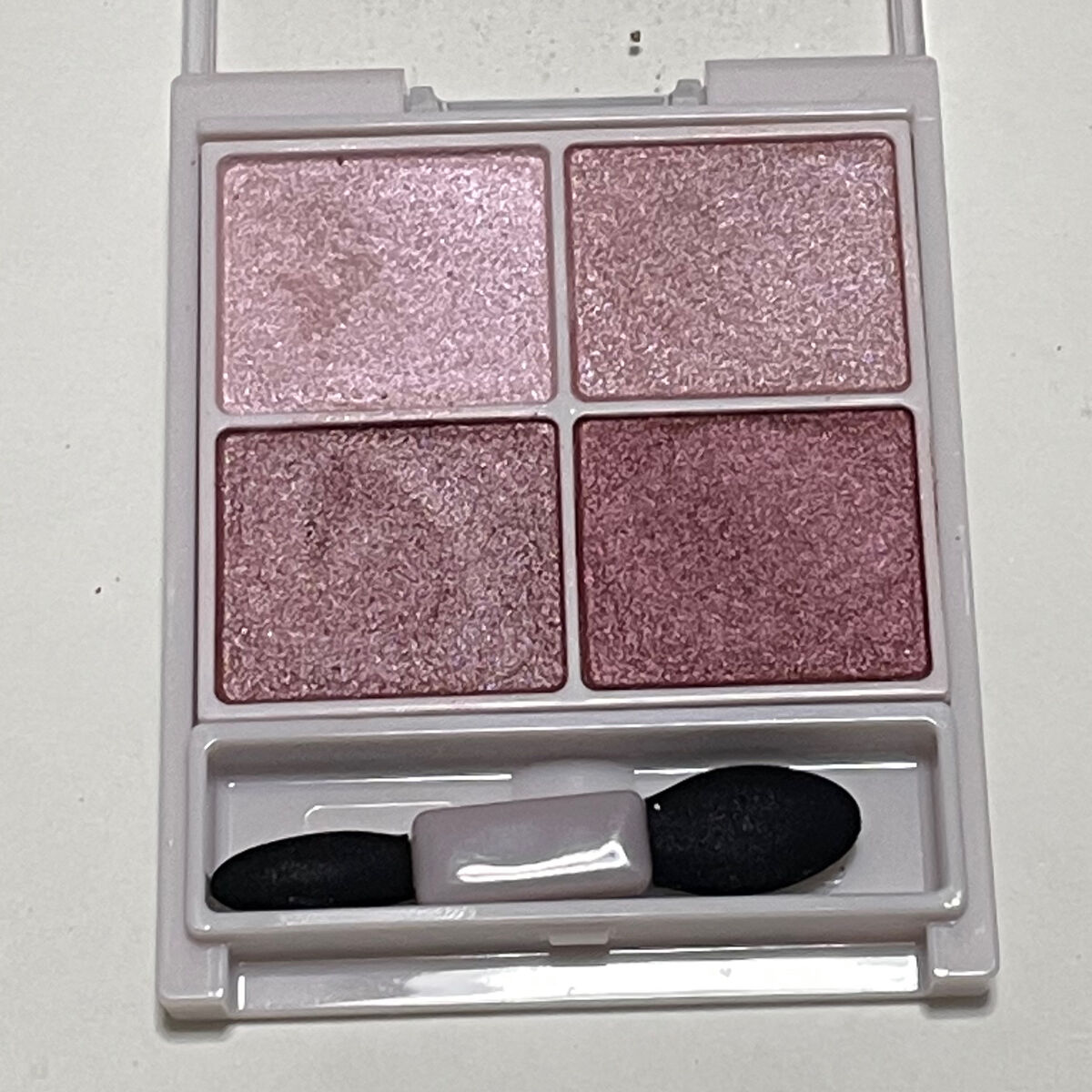 粉質は柔らかく、ふわっと密着します。 10 MUSHROOM マット。グレー系のベージュ。 20 TWO SHOT AMERICANO マット。アイライナー使いにもできるしっかり目のダークブラウン。 22 BEBE パール。涙袋にぴったりのベージュ系カラー。 40 SUPER PINK マット。しっかりと華やかなピンク。 42 CHEW グリッター。ミルクピンクをベースに、ピンクとゴールドラメ入り。 45 BLUSH GREY マット。くすみグレー。 38 PINK ATTENTION 繊細なラメ。偏光パールぽく輝くピンクトーンのハイライト。