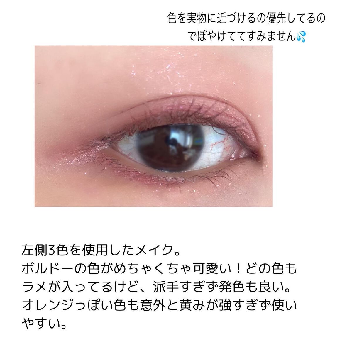 このパレットは、黄味が少なめでブルベにも使いやすいブラウン。 発色はしっかり目だけど、ブラシで調節も可能なので幅広い人に使いやすいパレットだと思います🎀✨ ラメ感も少しずつ異なり、華やかさを抑えたい時は右上を多めに使うと品の良いツヤのあるピンクブラウンメイクになります💎✨ 左上のラメカラーは白っぽいのでどんなアイシャドウとも相性抜群! この可愛い色味と煌びやかなラメは唯一無二です!