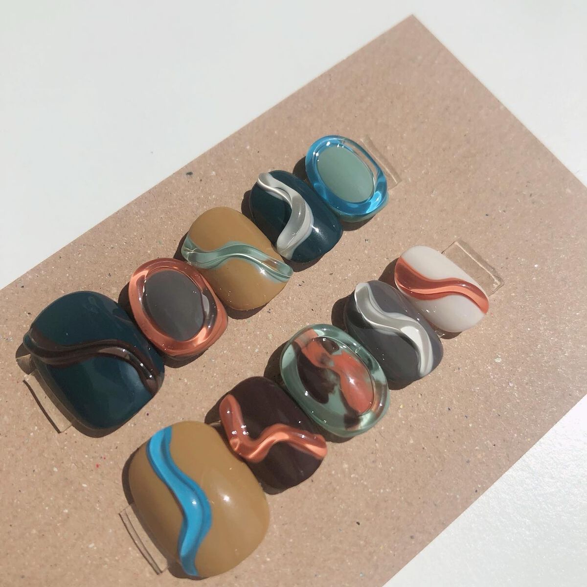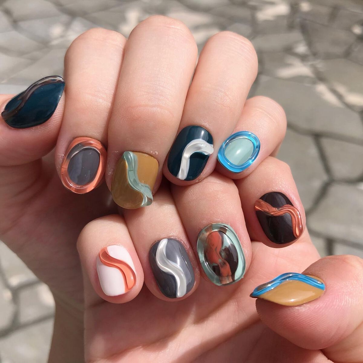 わたしは基本プチプラしか使わないので 参考にして頂けたら嬉しいです☺️ 春っぽくしたい!との事だったので 色はいい感じにご提案させて頂きました🥰🌷 #春ネイル #うねうねネイル #ぷっくりネイル #ネイルチップ #個性派ネイル #プチプラネイル #daisoネイル #100均ネイル #セルフネイル #カラフルネイル #ポップネイル