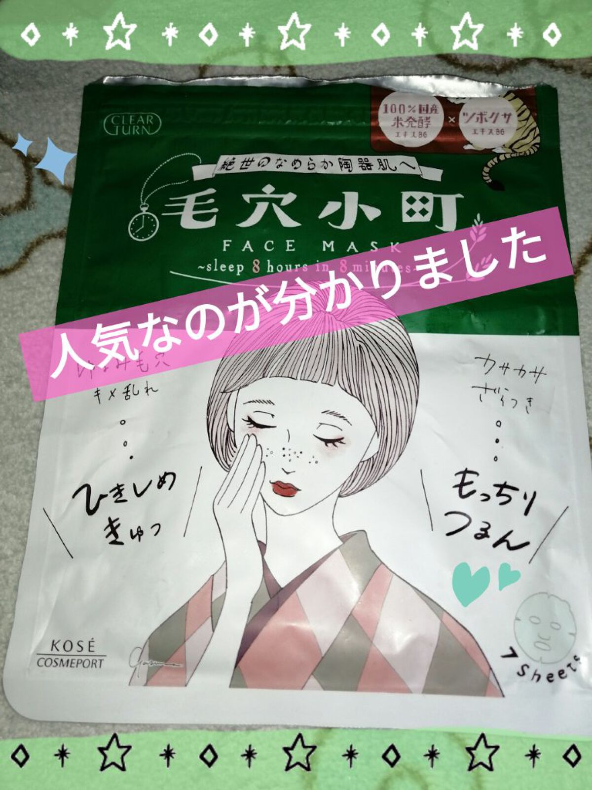 🟩🟩🟩🟩🟩🟩🟩🟩🟩🟩🟩🟩🟩🟩🟩✨️クリアターン✨️毛穴小町マスク7枚入✨️可愛いイラスト((o(。・ω・。)o))大好きなクリアターン🩷大好きな#ミントちゃんからの贈り物🎁ありがとう(⸝⸝⸝ᵒ̴̶̷̥́⌑ᵒ̴̶̷̣̥̀⸝⸝⸝)毛穴、乾燥、肌荒...