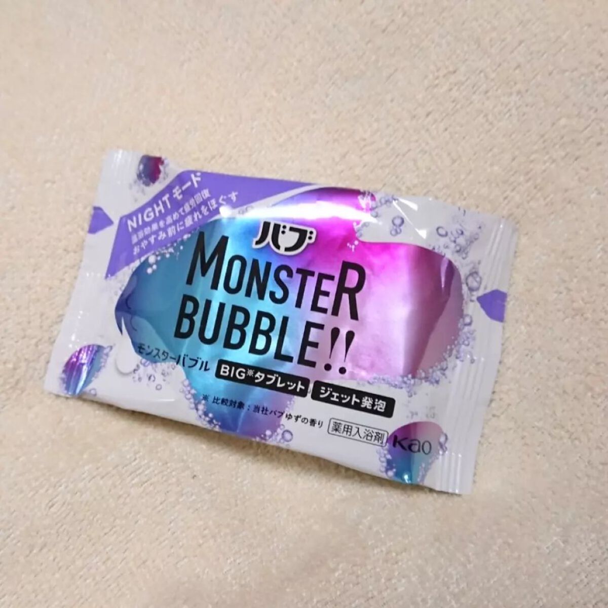 バブモンスターバブル NIGHTモードジュワっと回復!強炭酸チャージ**勢いよく発泡しながら、炭酸がお湯に溶け込むこと時々ひとりでお風呂タイムを楽しんでいます💕そんなときに欠かせないのは入浴剤✨今回使ってみたバブモンスターバブル NIGHTモ...