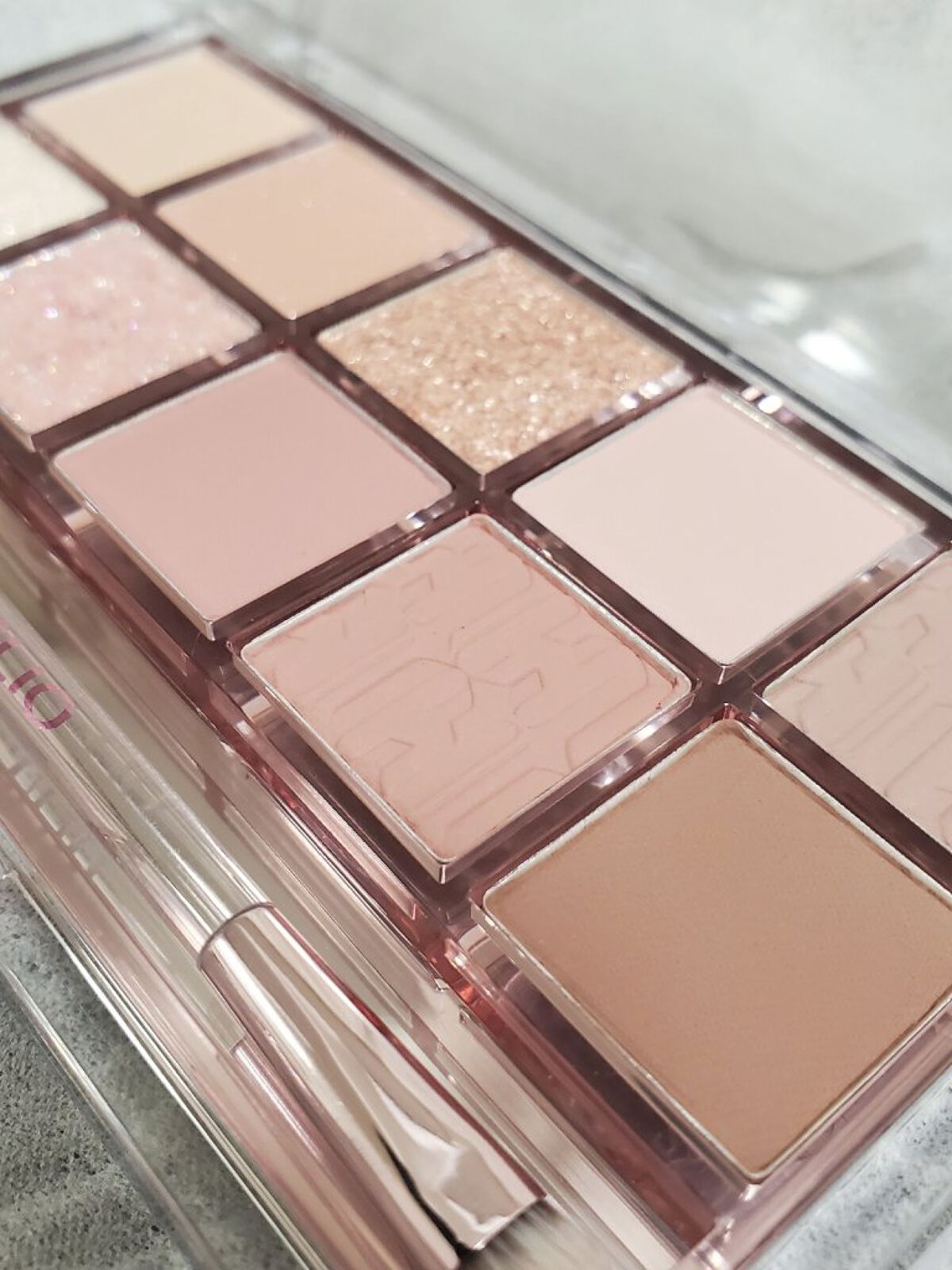量産!地雷メイク!系 女子の強めピンクでもなく、 韓国コスメ大好き!女子系の強めのオレンジでもなく、 誰でも馴染みやすいお色です♡ 絶妙な色のパレットが揃っているので 使う色と範囲しだいで 濃く見せることも薄く見せることも調整可能!! ラメはギランギランですが、指でとって まぶたに乗せるとあまり目立たない感じでした!