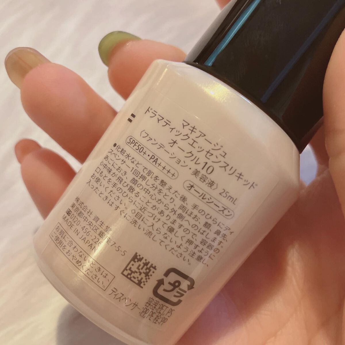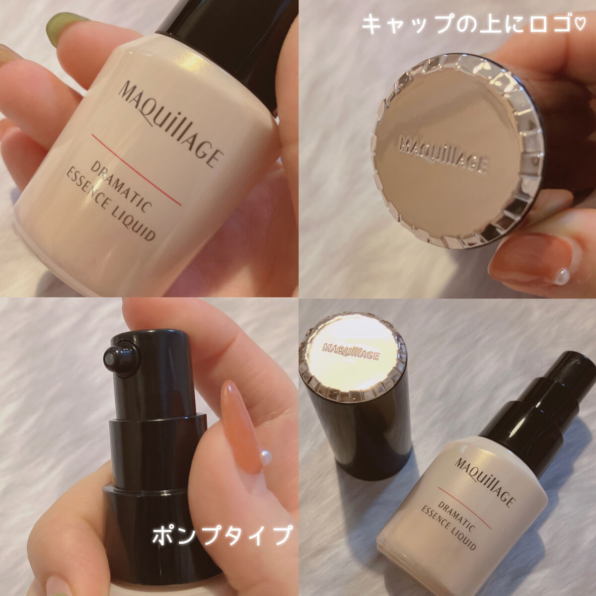 - カバーだけじゃない。極上つるん肌。毛穴レス美容液リキッドファンデ SPF50+・PA++++ ○乳化技術と美肌効果と浸透型美容液が三位一体となり、マキアージュ史上最高の美肌が叶うリキッドファンデーションです。 ① フルカバー×スキンケア乳化技術 └毛穴の凹凸にもピタッと密着。美容液を毛穴の奥まで届けながら、フルカバー ・保湿成分や油分のべたつきを感じさせず、なめらかな使用性を実現 ② ラスティング美肌効果 └毛穴・色ムラをフルカバーしながら、時間が経ってもくずれず、つけたての仕上がりが 長時間 持続 1 ・毛穴の凹凸を補正しながらつるんとした肌に見せる-毛穴レスつやパウダー ・カバーと透明感を同時に叶える-360 °美肌パウダー ・マスクをしていてもくずれにくい-ラスティングコート成分 ※1 13 時間化粧もち 毛穴の目立ちのなさ・つや・透明感・カバー力・化粧くずれのなさ データ取得済み 当社 調 べ。効果には個人差があります。 ③ 浸透型うるおい美容液 └長時間保湿持続。毛穴の奥までうるおいを届ける-グリシルグリシン ・グリセリン 整肌・保湿 ・たっぷりのうるおいで満たしつやのある肌に-ウォータリーキープエッセンス (ウォーターリリーエキス・スーパーヒアルロン酸(アセチルヒアルロン酸Na)・水溶性コラーゲン・グリセリン) 配合 ○1 回の使用量が分かりやすいディスペンサータイプです。 ○無香料、 ノンコメドジェニック・アレルギーテスト済 (全てのかたにニキビができない・アレルギーが起きないというわけではありません)