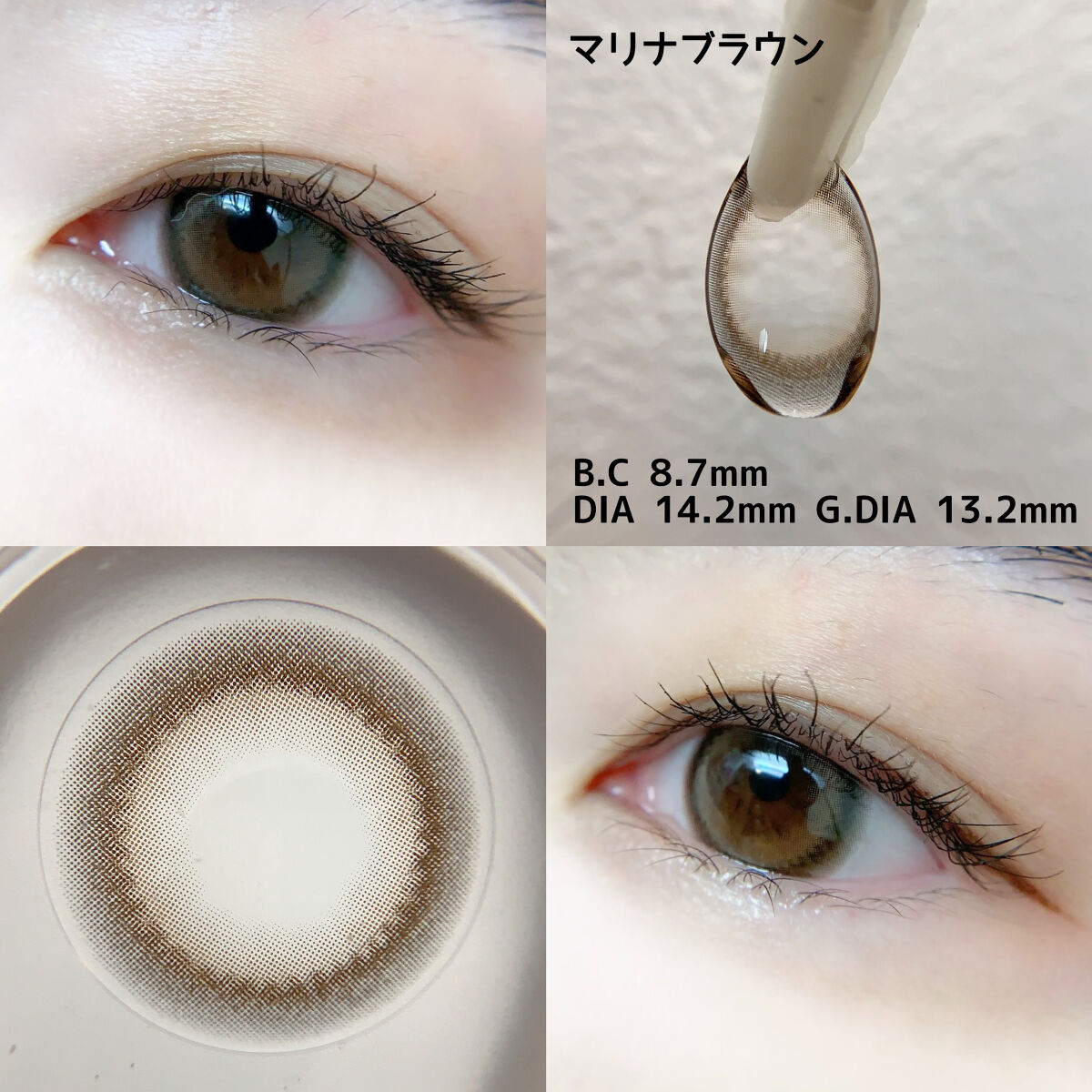 ぼやっとした太めのフチから、ブラウンがじゅわっと広がるような可愛いデザイン。 装着してみると、暖かみがあるのに透明感が出るようなナチュラルで柔らかい印象の目元に。 着色直径も13.2mmと小さめなので、ナチュラルでぼんやりとしたレンズがお好きな方に🤎