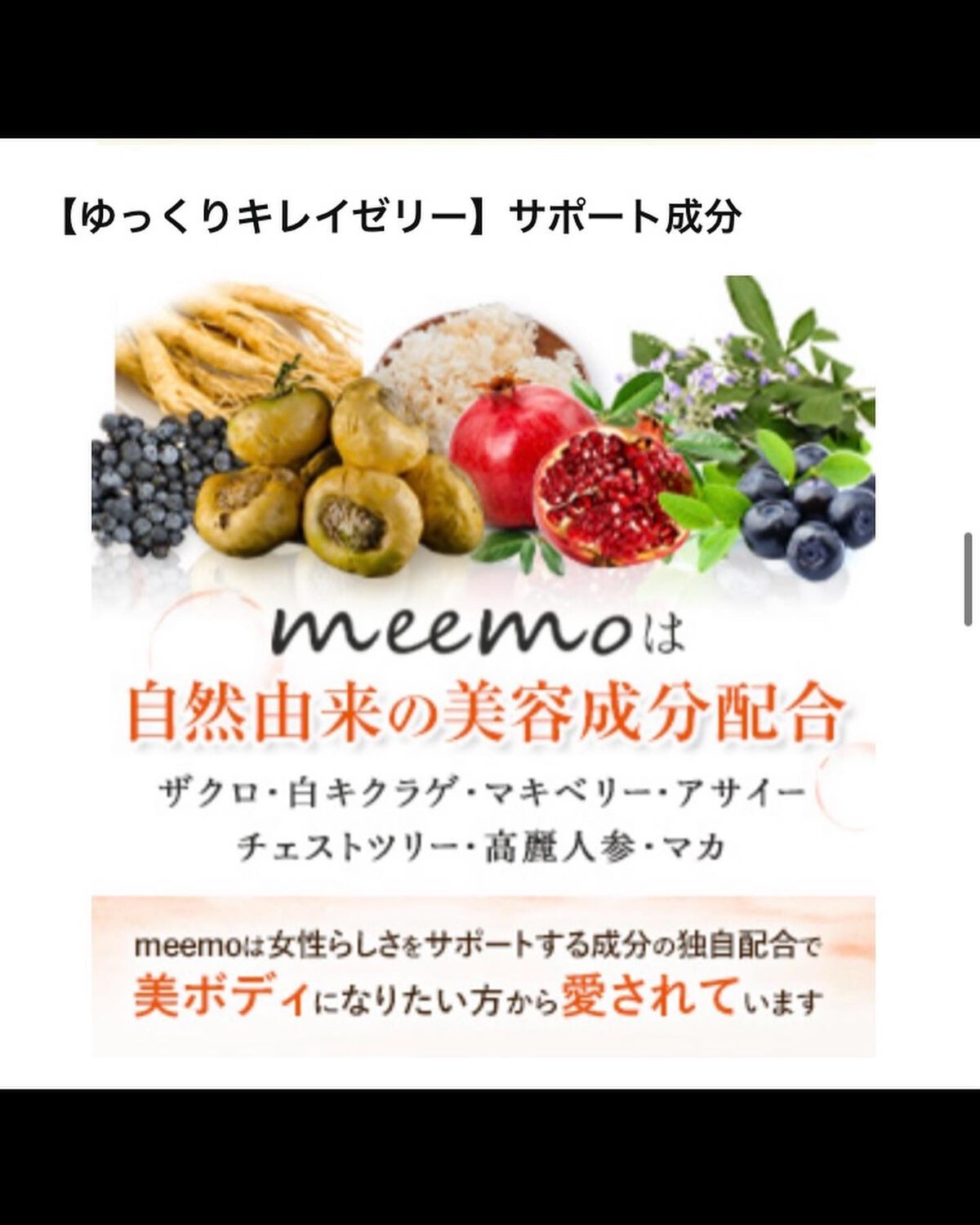 大人の魅力あふれる理想のボディを目指す女性のための、トータルボディケアゼリー❣️ サプリメントでは多いカプセル型が苦手な方でも摂取しやすいゼリータイプです😊 こちらのアイテムは、予約5年待ち「日本一予約の取れない整体師」と呼ばれる朝井麗華さんがプロデュースしてます。 女性のためのボディケアサプリは、同じものをずっと服用するスタイルが多く、そこに疑問を感じた朝井麗華さんは、2つのゼリーを飲み分ける方法を開発したそうです。 ミーモは2種のゼリーがあります。きらきらキレイ→ザクロ味 ゆっくりキレイ→カシス味です。 注目の成分の「エクオール」や「エラスチン」、「ワイルドヤム」や「チェストツリー」、「大豆イソフラボン」など、2種類のサプリそれぞれで配合成分を調整しているそうなので飽きずに楽しく続けられるとのことです。 確かにゼリータイプっておやつになるので私は大好きです🥰美しくなりたいねー!