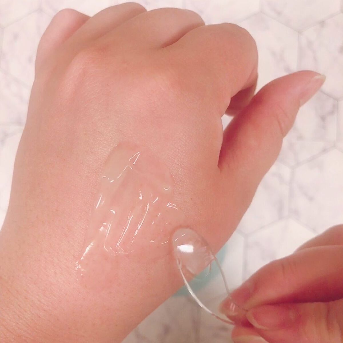 出した感じは、水溶き片栗粉のようなとろっとしたジェル!触ってみると砂が混ざったようなザラザラとしたテクスチャー 敏感肌の私は、ピーリングすると赤みが出たり刺激強くて抵抗あったけど割と優しい使い心地で使いやすかったです🙆♀️ ピーリング特有の洗い流した後のキシキシ感はなくつるっとなめらかに肌のごわつきやざらつき、凸凹がなくなる✨