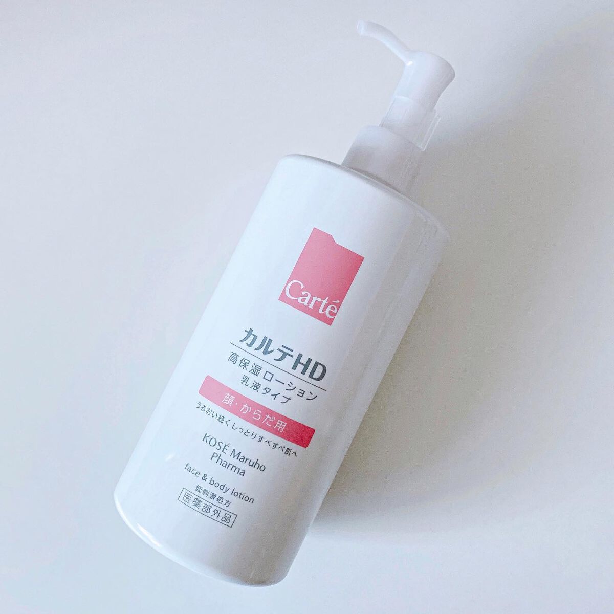 - 【高保湿フェイス&ボディローション】 顔にもからだにも。しっとりやわらか肌つづく。 信頼の保水有効成分「ヘパリン類似物質HD※」配合、低刺激処方の高機能フェイス&ボディローションです。 ヘパリン類似物質HDが、気温・湿度の変化で乾燥しやすいからだの肌のうるおい構造(角層ラメラ)を立て直し、しっとりやわらか肌に導きます。 2種のこだわりオイル配合で、しっとりするのにべたつかず、なめらかにのびひろがる使用感。敏感な肌でもまさつによるストレスがなく、全身をうるおいで満たします。 カルテHDシリーズとしては初めてお子さま(3歳以上)にもお使いいただける商品。 ・ボトルタイプ(220mL) ・ポンプタイプ(410mL) ・つめかえ用(370mL)の3種でラインアップ。 ご自身の保湿に、ご家族や大切なかたの保湿に。みずみずしくなめらかなうるおいが全身を包み込むフェイス&ボディローションです。 ※保水有効成分ヘパリン類似物質のこと <販売名:HD フェイスボディL>