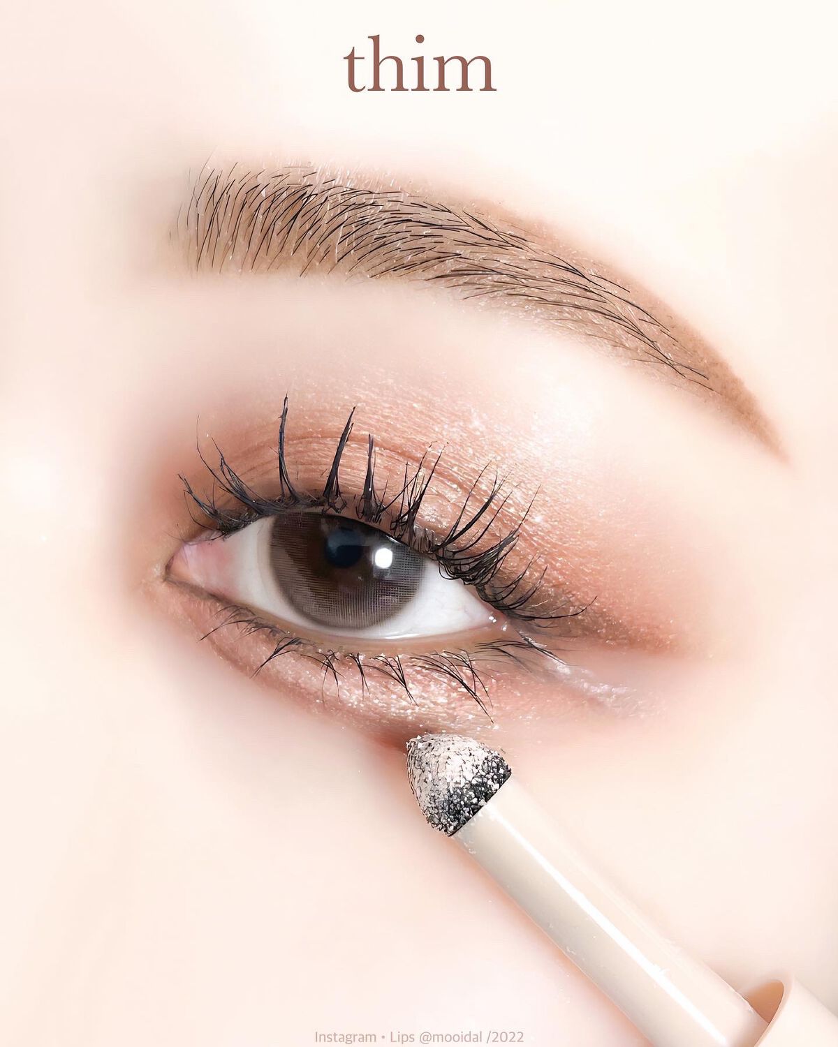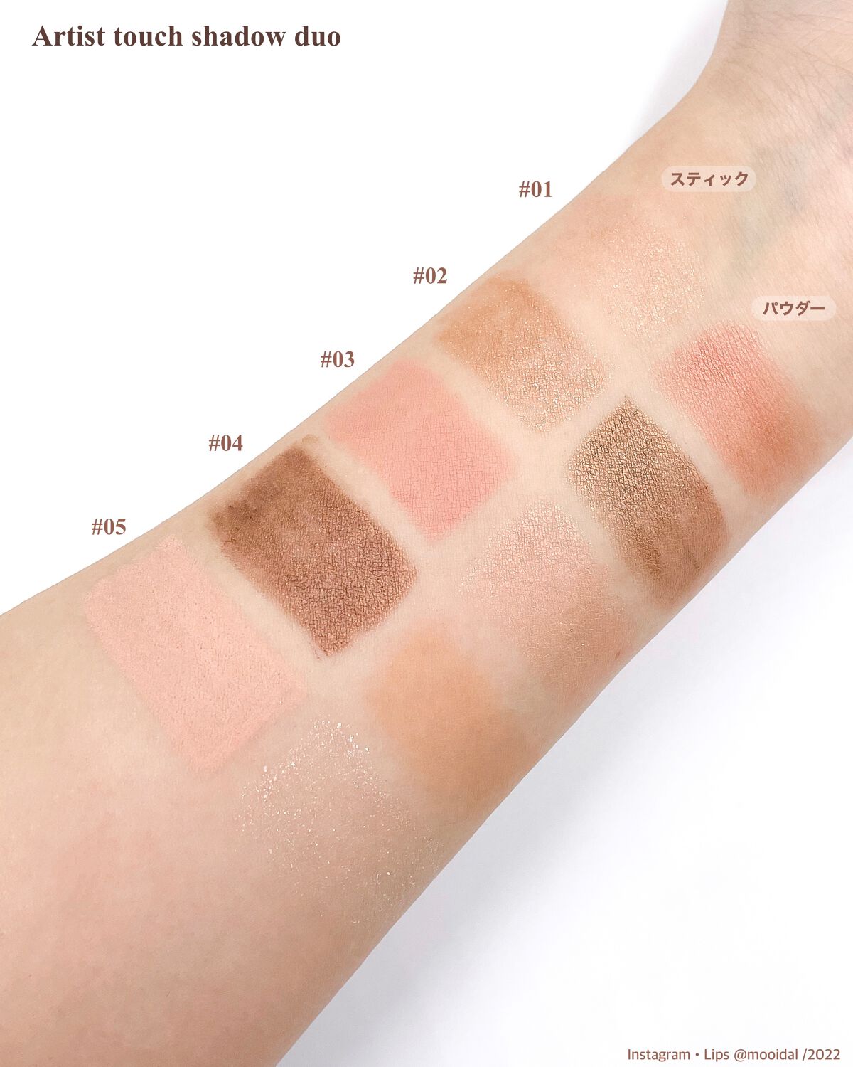 thimアーティストタッチシャドウデュオ05エターナルマットとグリッターアイシャドウが2in1スティックタイプで持ち運びにも🌸マット:リネン スキントーンでベースカラーオススメラメ:ムーンビーム ライトピンクベースに銀緑ピンク パ...