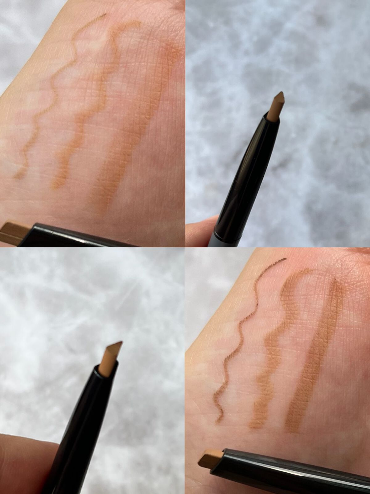 - 二層芯でふんわり眉頭もくっきり眉尻も簡単 ふんわりグラデーション眉が作れるブラシ付きアイブロウ ■ペンシル層(色の濃い方):角を使って眉尻をシャープに描ける、濃いカラー&なめらか質感 ■パウダー層(色の薄い方):眉全体をふんわり仕上げる、淡いカラー&パウダリー質感 ■全3色