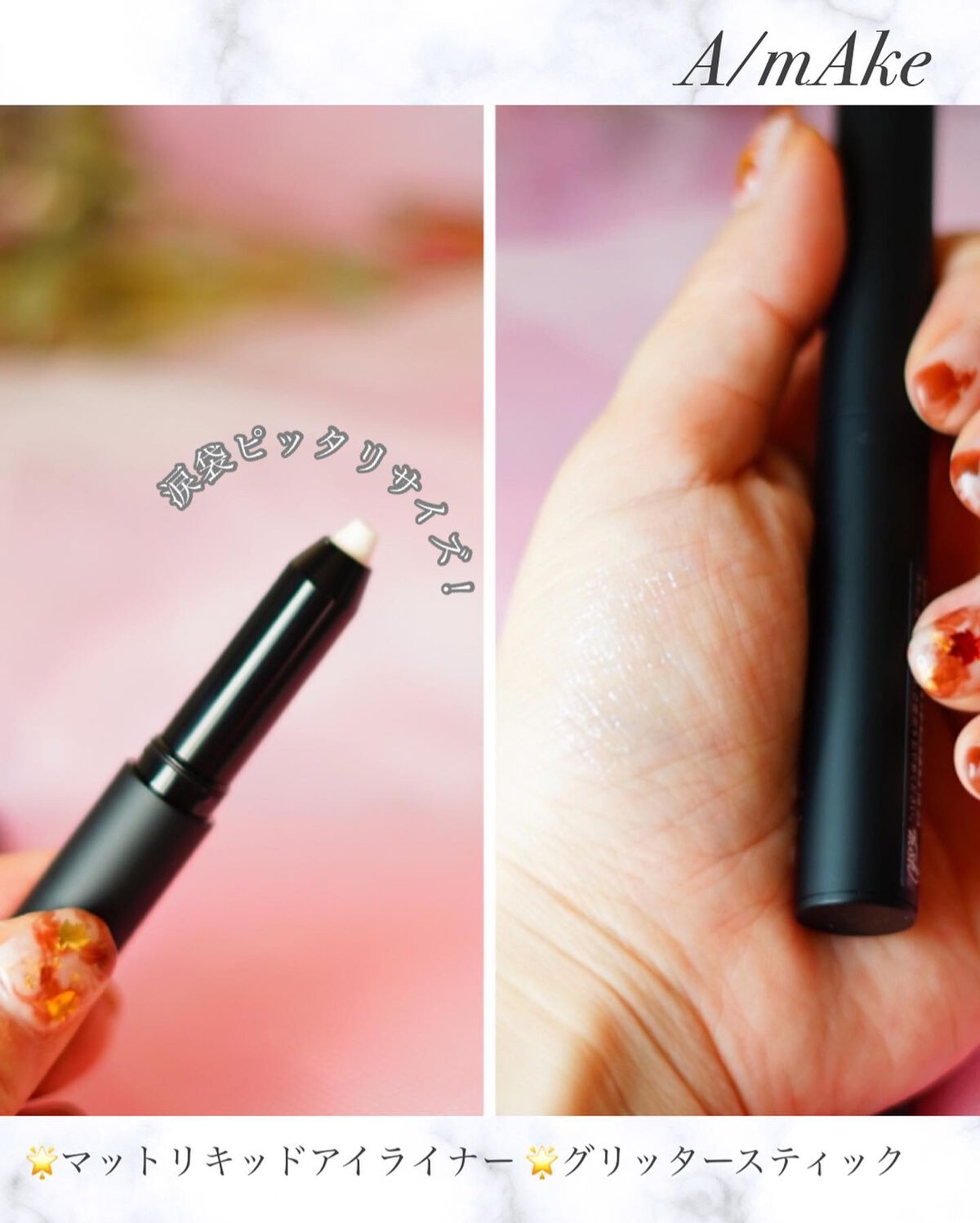 初めましてのアイテムだったけど使いやすいのにお買い得だしオフラインですぐ買えるし高コスパ💯 肌に馴染みやすいマットな仕上がりで、すぐ乾くから滲まないしおしゃれでしっかりブラックってのも良き🙆♀️ 涙袋やアイシャドウ・ハイライトとマルチに使えるアイテム✨キラッキラのラメだけど肌馴染みのいいベースカラーで大人女子でも使いやすい👩
