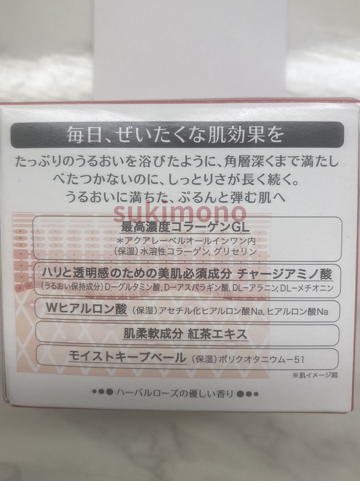 - 今日も未来も、うるおう肌へ、高保湿オールインワン。 たっぷりのうるおいを浴びたように、角層の深くまで満たし、べたつかないのに、しっとりさが長く続く。うるおいに満ちた、ぷるんと弾む肌へ。 オールインワンの1品5機能(化粧水・乳液・クリーム・美容液・マスク)はそのままに、「最高濃度コラーゲンGL」と「Wヒアルロン酸」、「チャージアミノ酸」を配合することで、肌にうるおいを与え続け、たくわえることで、未来の保湿力まで高めることができる高保湿オールインワンです。優しい香りはハーバルローズ。パッケージは、アイコンである赤色をいかしながら、より贅沢なエステ感が見合う上質さ、効果感、高揚感を演出する色調へ進化します。