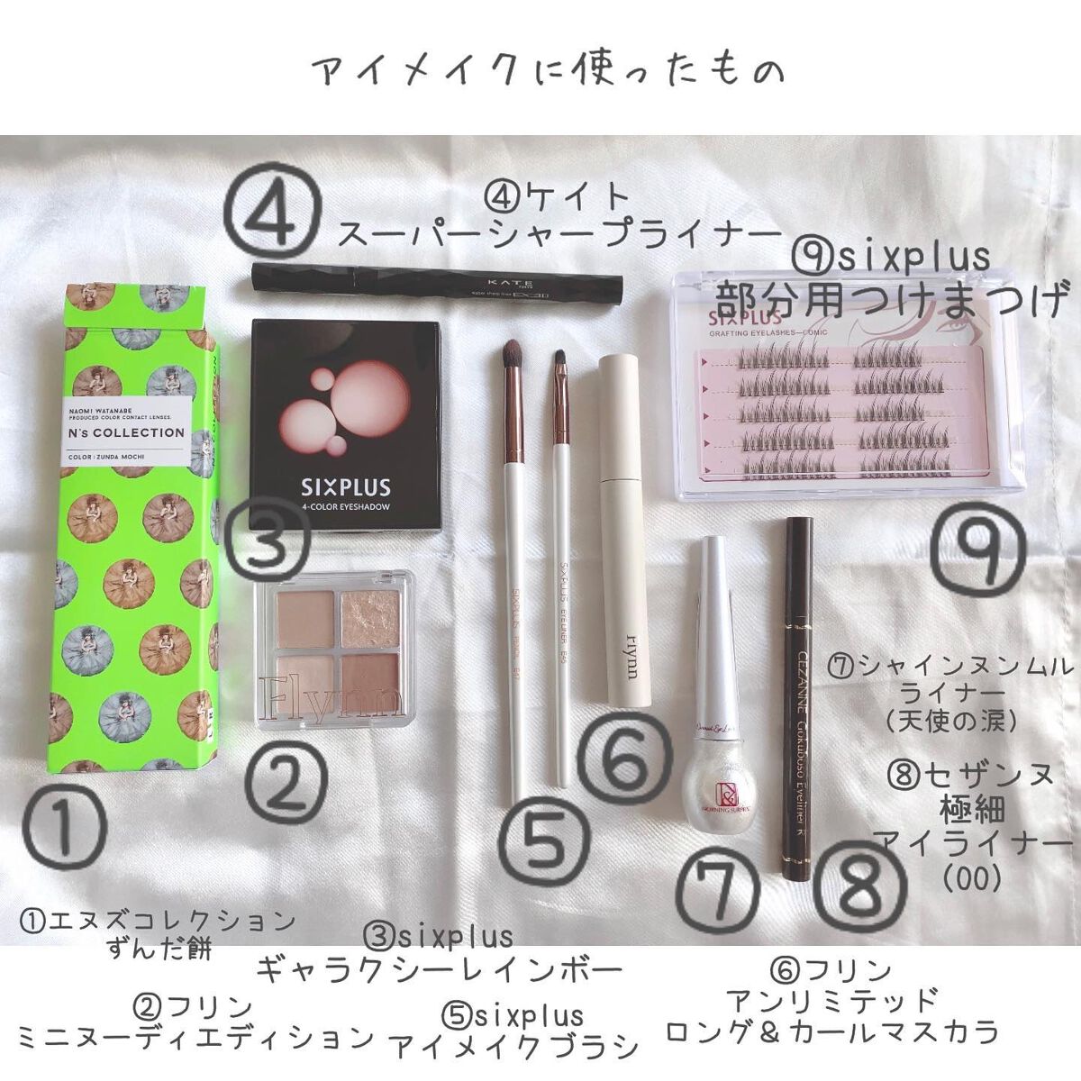 使っているのは、クリオのアイシャドウパレット/シンプリーピンクと、ブレンドベリーのアイシャドウパレット/いちごミルク&ピンクブラウン(本日発売)、ロムアンドゼロベルベットティント/ディープソウルで、カラコンはNARERUの文月ベージュを使用しています。 全体的に目尻重めにすると、遠心顔の印象になり幼い可愛らしい雰囲気になります🍼 目を下と横に拡張していくイメージで作っています…໒꒱⋆゚ 涙袋の影は、ユアグラムのアイブロウパウダーで描いています◎