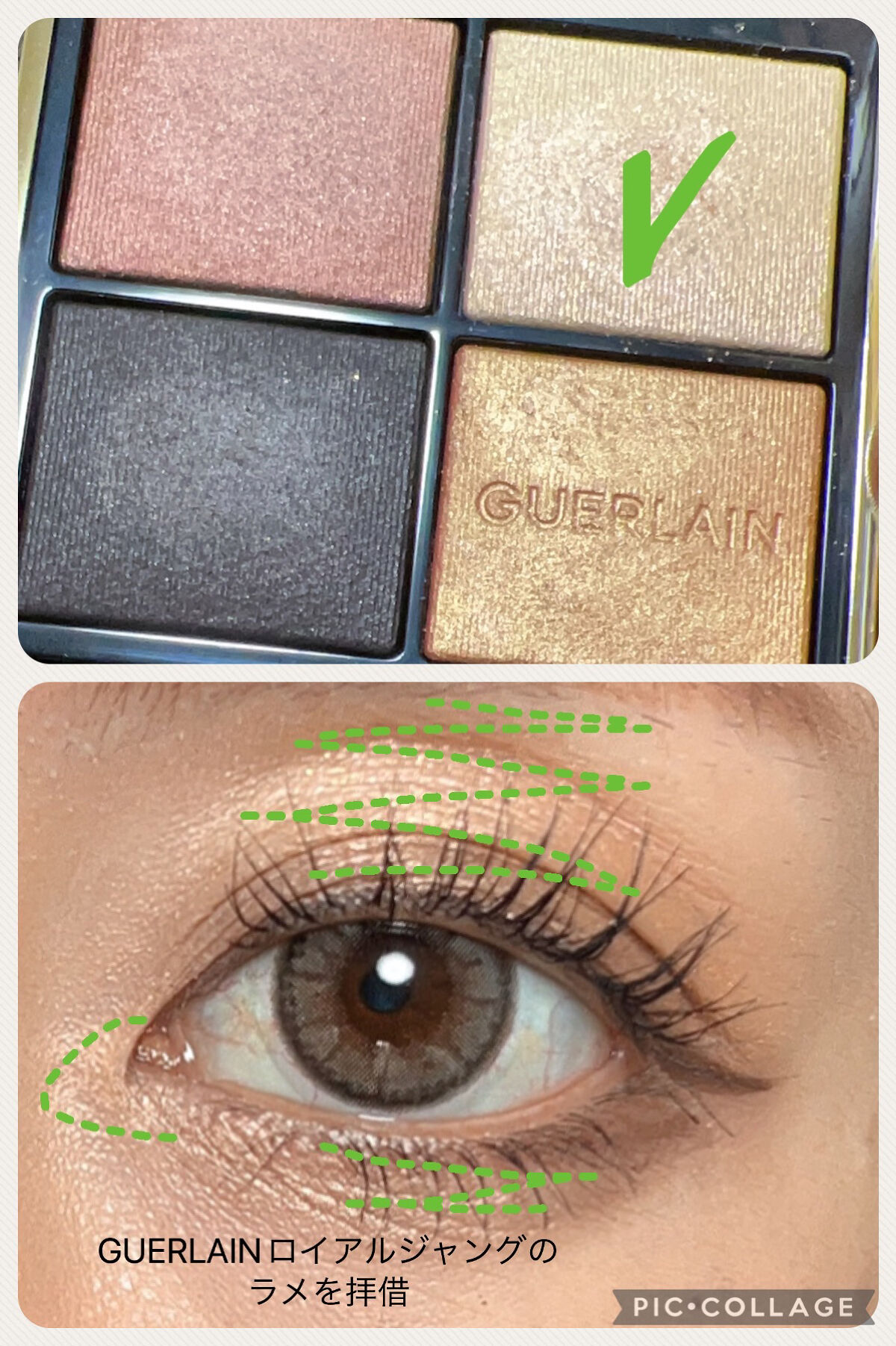 GUERLAINオンブルジェ【ロイヤルジャングル】で作るブラウン×ゴールドのヘイローアイ✨GUERLAINらしいゴージャスな輝きで作るヘイローが美しい🥰💕締め色をたっぷり使って、上からブラウン、ゴールドの順で重ねていって立体感を作ったヘイロー...