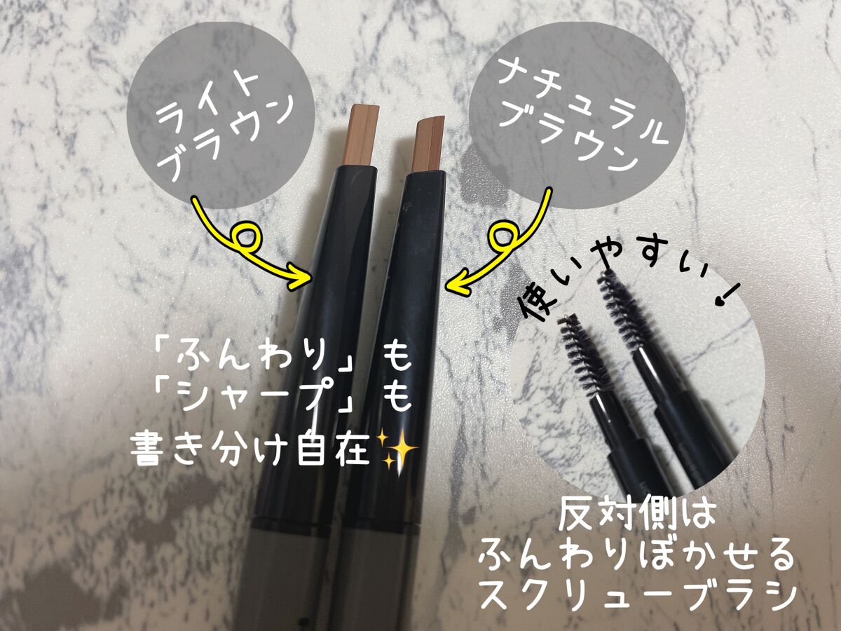 - 二層芯でふんわり眉頭もくっきり眉尻も簡単 ふんわりグラデーション眉が作れるブラシ付きアイブロウ ■ペンシル層(色の濃い方):角を使って眉尻をシャープに描ける、濃いカラー&なめらか質感 ■パウダー層(色の薄い方):眉全体をふんわり仕上げる、淡いカラー&パウダリー質感 ■全3色