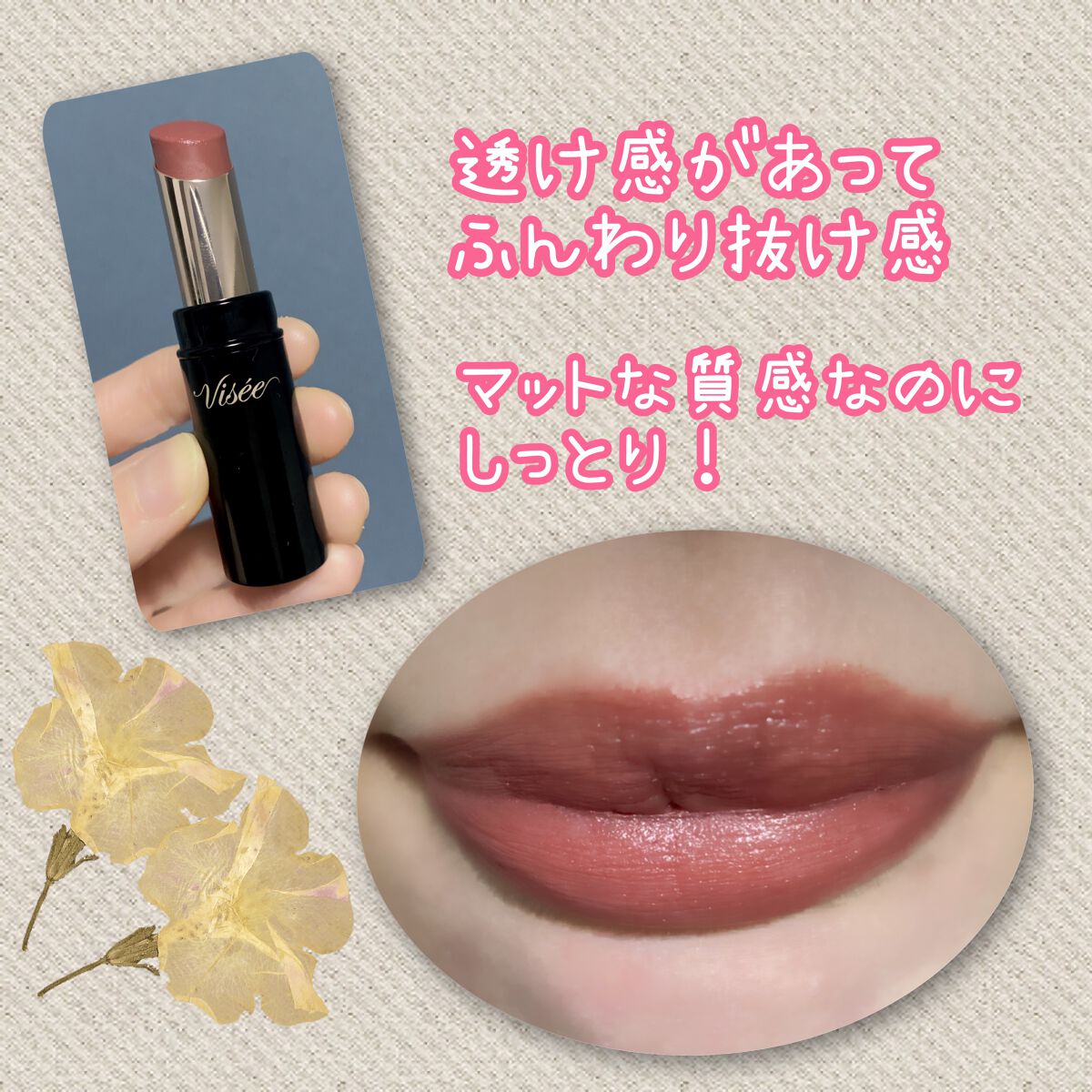 Visée ニュアンスマットルージュ BR340 カームブラウン ¥1,540ブルベさんにも似合う少し赤みのあるブラウンで気に入って使っています♡これを塗るだけで一気に大人っぽい雰囲気になります!マットですが、マット過ぎず乾燥もしませんでした...