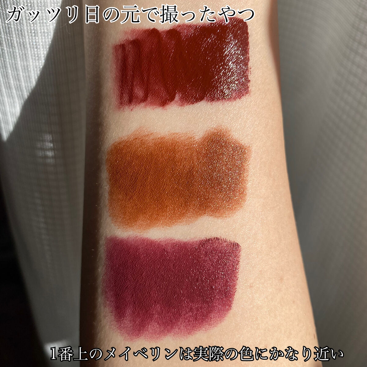 これは結構知ってる人も多そう。するする塗れて伸びもいいし最高! 色も可愛いし、唇にのせると自分の唇の色と合わさっていい感じのブラウンになるのがすごく好き ベージュ感と、いい色気もあってたまりません♡ これほんとにオシャレな色!冬もバンバン使えそうな色! 秋っていう色🍁質感もマットだし、ブラウンレッドも秋らしい色だなって思います。