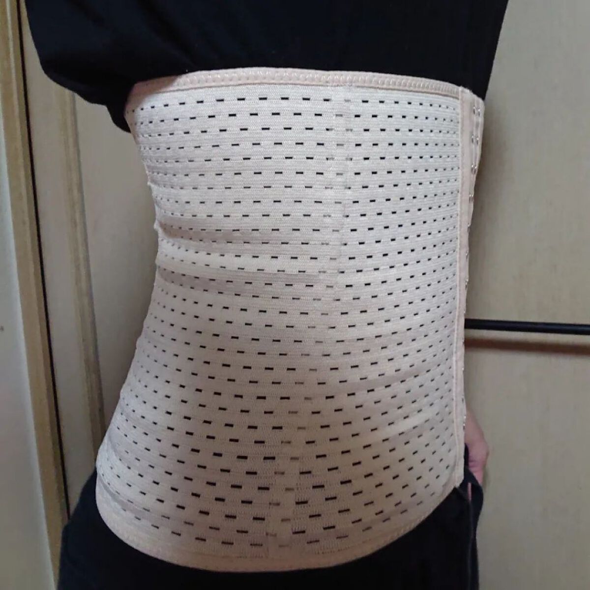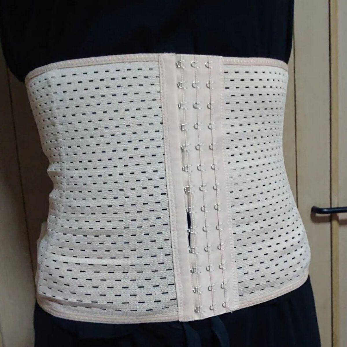 蒸れにくくストレッチの効いたメッシュ生地のコルセット 高さのあるデザインで骨盤から助骨のあたりまでをぐぐ〜っとしっかりと引き締めてくれる! 3段階のホック仕様で締めつけの調整ができるからしっかり引き締めも快適な使い心地も自分で選べるよー✨ 私はダイエットしてるのでくびれがほしいと思って使ってます。 もちろんホックは1番キツくしてる。くびれほしー! あとお腹の出っ張りね。下っ腹のぽこってやつ😂 ダイエット目的じゃなくても長時間の立ち仕事やデスクワークでの疲労防止にもぴったりだよ! シャンパンベージュのカラーは洋服に響きにくいから普段使いやすいです😆 お値段も手が出しやすくて良き👍