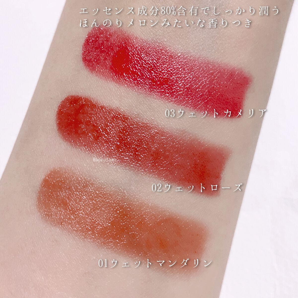 | ベタつかない軽いテクスチャーで、 体温でなめらかに溶けてツヤツヤでぷっくりとした唇に✨ | 詳細を見る | ||
