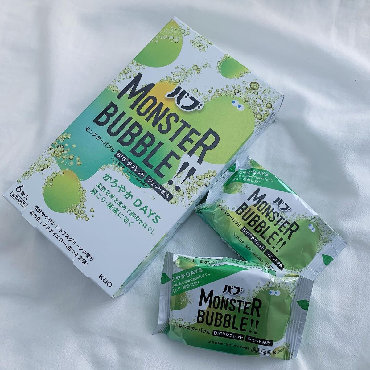 温浴効果を高めて筋肉をほぐし 肩こり・腰痛に効く かろやかDAYS 気分かろやかシトラスグリーンの香り。 シトラスグリーンの爽やかな香りもとても良かったです。全体的な使用感から、「かろやかDAYS」というネーミングは本当にこの商品にピッタリだなと思いました💗 990円で6錠入りなので、同じ値段で4個入りのモンスターバブルMEGA級と比較すると少しお安め。