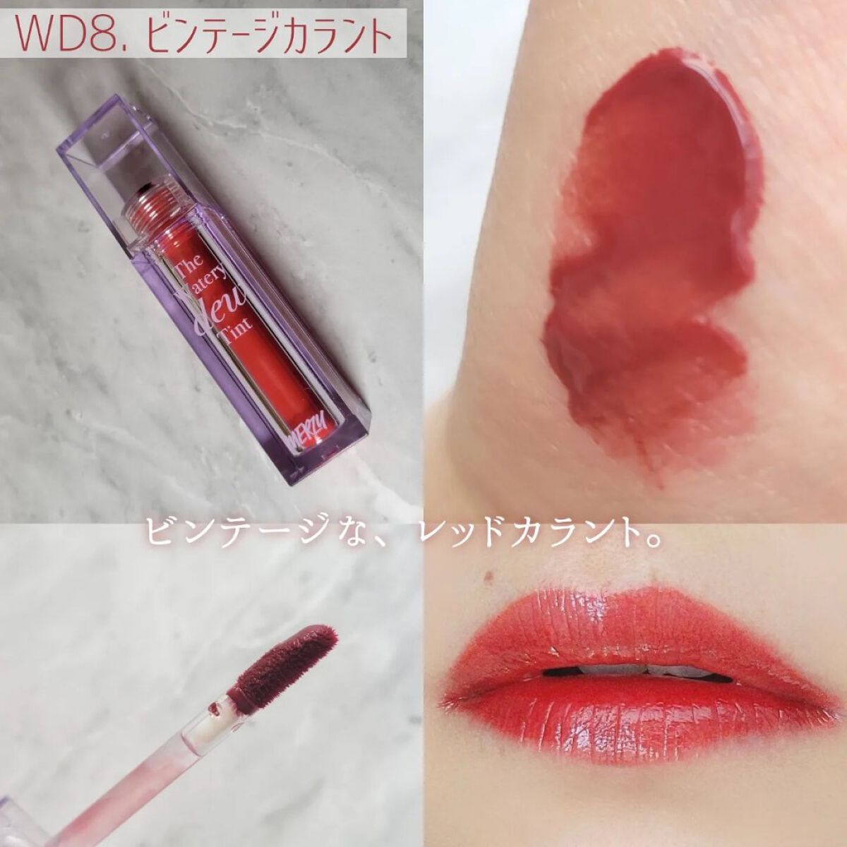 軽やかな薄膜と艶感が特徴的な「ザ ウォータリー デューティント」のシーズン2は深みカラーが揃っているよ♡ レンガ色からワインレッド、くすみピンクまであるからいろんなカラーが楽しめちゃう♪ イエベ春の私はWD7 ダスティモーヴが推し👍️