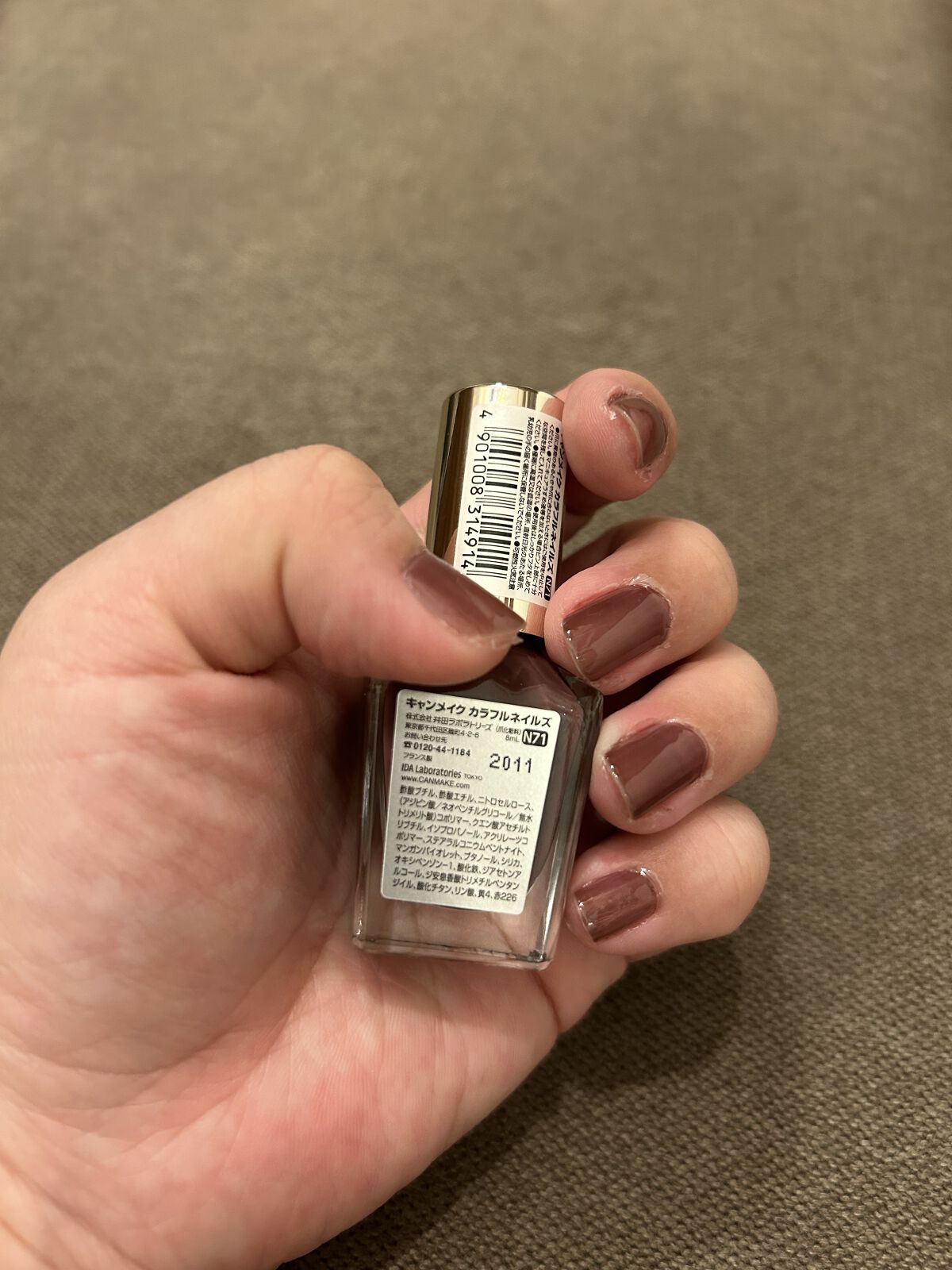- <N02 シックボルドー> 酢酸ブチル、酢酸エチル、ニトロセルロース、(アジピン酸/ネオペンチルグリコール/無水トリメリト酸)コポリマー、クエン酸アセチルトリブチル、イソプロパノール、アクリレーツコポリマー、ステアラルコニウムベントナイト、酸化鉄、ブタノール、オキシベンゾン-1、シリカ、赤220、ジアセトンアルコール、酸化チタン、リン酸、カーボンブラック、ジ安息香酸トリメチルペンタンジイル、黄4、赤226 [旧]酢酸ブチル、酢酸エチル、ニトロセルロース、(アジピン酸/ネオペンチルグリコール/無水トリメリト酸)コポリマー、クエン酸アセチルトリブチル、イソプロパノール、アクリレーツコポリマー、ステアラルコニウムベントナイト、(スチレン/アクリレーツ)コポリマー、酸化鉄、ブタノール、シリカ、オキシベンゾン-1、赤220、ジアセトンアルコール、酸化チタン、ジ安息香酸トリメチルペンタンジイル、リン酸、カーボンブラック、黄4 <N08 ミスティモーヴ> 酢酸ブチル、酢酸エチル、ニトロセルロース、(アジピン酸/ネオペンチルグリコール/無水トリメリト酸)コポリマー、クエン酸アセチルトリブチル、イソプロパノール、アクリレーツコポリマー、ステアラルコニウムベントナイト、酸化チタン、ブタノール、シリカ、オキシベンゾン-1、マンガンバイオレット、ジアセトンアルコール、酸化鉄、赤226、リン酸、カオリン、ジ安息香酸トリメチルペンタンジイル、黄4 [旧] 酢酸ブチル、酢酸エチル、ニトロセルロース、(アジピン酸/ネオペンチルグリコール/無水トリメリト酸)コポリマー、クエン酸アセチルトリブチル、イソプロパノール、アクリレーツコポリマー、ステアラルコニウムベントナイト、(スチレン/アクリレーツ)コポリマー、酸化チタン、ブタノール、オキシベンゾン-1、シリカ、酸化鉄、ジアセトンアルコール、マンガンバイオレット、ジ安息香酸トリメチルペンタンジイル、リン酸、カーボンブラック、黄4 <N10 ペールラベンダー> 酢酸ブチル、酢酸エチル、ニトロセルロース、(アジピン酸/ネオペンチルグリコール/無水トリメリト酸)コポリマー、クエン酸アセチルトリブチル、イソプロパノール、アクリレーツコポリマー、ステアラルコニウムベントナイト、酸化チタン、ブタノール、酸化鉄、オキシベンゾン-1、シリカ、ジアセトンアルコール、マンガンバイオレット、リン酸、ジ安息香酸トリメチルペンタンジイル、黄4、赤226 [旧]酢酸ブチル、酢酸エチル、ニトロセルロース、(アジピン酸/ネオペンチルグリコール/無水トリメリト酸)コポリマー、クエン酸アセチルトリブチル、イソプロパノール、アクリレーツコポリマー、ステアラルコニウムベントナイト、酸化チタン、ブタノール、シリカ、オキシベンゾン-1、ジアセトンアルコール、酸化鉄、ジ安息香酸トリメチルペンタンジイル、マンガンバイオレット、リン酸、黄4 <N12 アーモンドグリーン> 酢酸ブチル、酢酸エチル、ニトロセルロース、(アジピン酸/ネオペンチルグリコール/無水トリメリト酸)コポリマー、クエン酸アセチルトリブチル、イソプロパノール、アクリレーツコポリマー、ステアラルコニウムベントナイト、(スチレン/アクリレーツ)コポリマー、酸化チタン、ブタノール、シリカ、オキシベンゾン-1、ジアセトンアルコール、ジ安息香酸トリメチルペンタンジイル、黄4、カーボンブラック、リン酸、コンジョウ <N16 ココア> 酢酸ブチル、酢酸エチル、ニトロセルロース、(アジピン酸/ネオペンチルグリコール/無水トリメリト酸)コポリマー、クエン酸アセチルトリブチル、イソプロパノール、酸化チタン、アクリレーツコポリマー、ステアラルコニウムベントナイト、酸化鉄、ブタノール、シリカ、オキシベンゾン-1、ジアセトンアルコール、黄4、リン酸、ジ安息香酸トリメチルペンタンジイル、カーボンブラック、赤226 [旧]酢酸ブチル、酢酸エチル、ニトロセルロース、(アジピン酸/ネオペンチルグリコール/無水トリメリト酸)コポリマー、クエン酸アセチルトリブチル、イソプロパノール、酸化チタン、アクリレーツコポリマー、ステアラルコニウムベントナイト、ブタノール、酸化鉄、シリカ、オキシベンゾン-1、ジアセトンアルコール、ジ安息香酸トリメチルペンタンジイル、黄4、リン酸、カーボンブラック <N17 クリームチャイ> 酢酸ブチル、酢酸エチル、ニトロセルロース、(アジピン酸/ネオペンチルグリコール/無水トリメリト酸)コポリマー、クエン酸アセチルトリブチル、イソプロパノール、アクリレーツコポリマー、ステアラルコニウムベントナイト、(スチレン/アクリレーツ)コポリマー、酸化チタン、ブタノール、シリカ、オキシベンゾン-1、ジアセトンアルコール、ジ安息香酸トリメチルペンタンジイル、酸化鉄、リン酸、黄4、カーボンブラック <N19 スウィートコーラル> 酢酸ブチル、酢酸エチル、ニトロセルロース、(アジピン酸/ネオペンチルグリコール/無水トリメリト酸)コポリマー、クエン酸アセチ