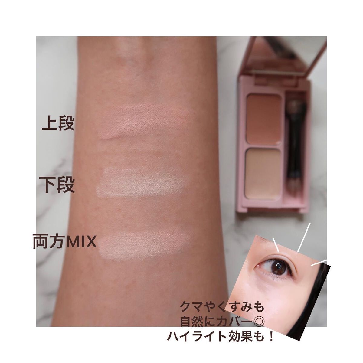 優秀な下地のいいところは ファンデーションや コンシーラーが少なくすむくらいに綺麗に仕上がるところ! 4つのカラーは肌の気になるところを補整し、 なりたい仕上がりを叶えます。 部分使いもおすすめ! ハート塗り♡で部分使いをお試ししてみました。 カバーしたいところが多かったので 少しハートは多め(笑) それぞれに効果が現れているかと思います。 毛穴がつるん!とカバーされて 肌の質感が綺麗に変わっていることも注目🤗✨ 一日中皮脂浮きを抑える崩れにくさも有り難い! サラッとしているので手早く伸ばすことがオススメです✨