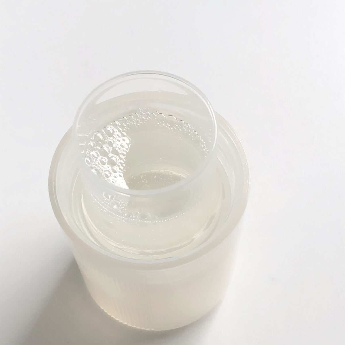 - 界面活性剤(エステル型ジアルキルアンモニウム塩、ポリオキシエチレンアルキルエーテル)、安定化剤、香料