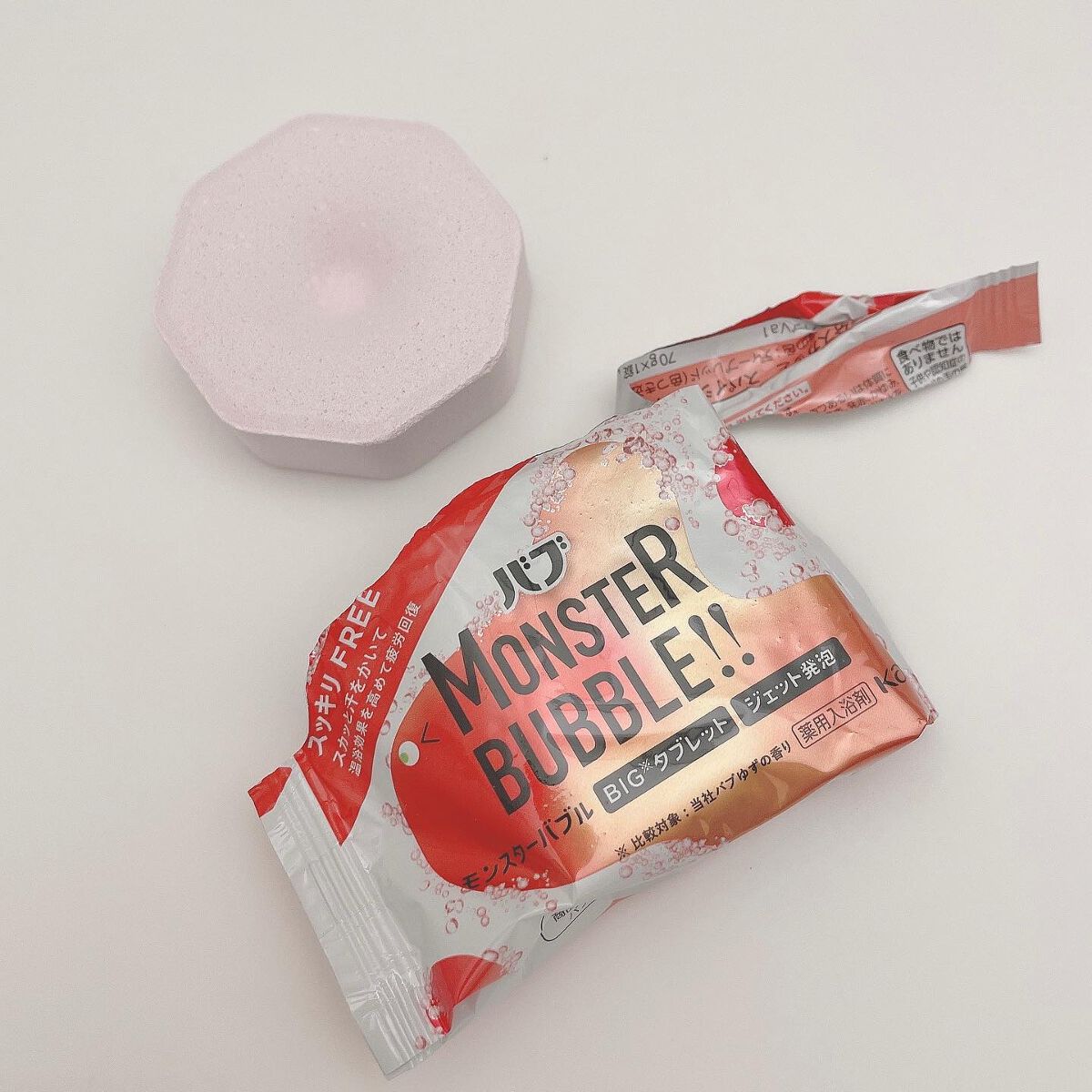 花王さまからいただきましたバブモンスターバブル スッキリFREE袋から取り出すとドーンとBIGなタブレット💥強炭酸で、しゅわしゅわと溶けていく様子を眺めるのもリフレッシュタイムになり、癒されます😌♨️素敵なディープレッドの色のお湯とスパイシー...