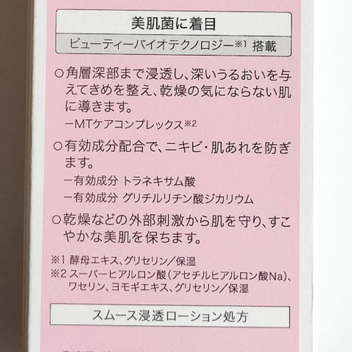 - (医薬部外品) カサカサ・乾燥を防ぎうるおいに満ちた「なめらか美肌」へ。薬用化粧水 乾いた肌の角層へ、無理なく浸透。美肌バリア機能をすばやく整えて、透明感あふれるしっとりうるおう美肌へ。しっとりなめらかな使い心地 誰の肌にも存在し、美しい肌の鍵である美肌菌に着目。 カサカサ・乾燥を防ぎうるおいに満ちた「なめらか美肌」へ導く薬用化粧水です。 たっぷりのうるおいで、ごわついた肌をやわらかく整え、美容成分を角層深部まで浸透させます。 しっとりなめらかな使い心地で肌になじみます。 ●厳選成分配合、クリーン製法 ●パラベン(防腐剤)フリー、アルコール(エチルアルコール)フリー ●無香料、無着色、弱酸性 ●低刺激設計。敏感肌の方のご協力によるパッチテスト済み* ●スティンギングテスト済み* *すべての方にアレルギーや皮ふ刺激がおきないわけではありません