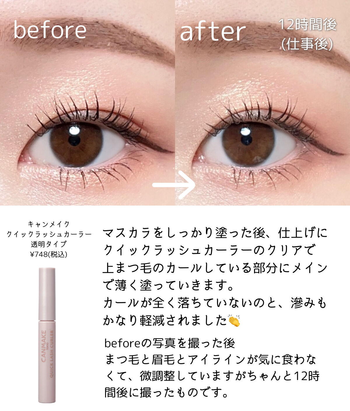 【キャンメイク クイックラッシュカーラー透明タイプ ¥748】言わずと知れた名品、キャンメイクのクイックラッシュカーラーの透明タイプ。クリアタイプのマスカラとして、単品使いできるだけでなく、マスカラ下地や、トップコートとしても使える万能アイテ...