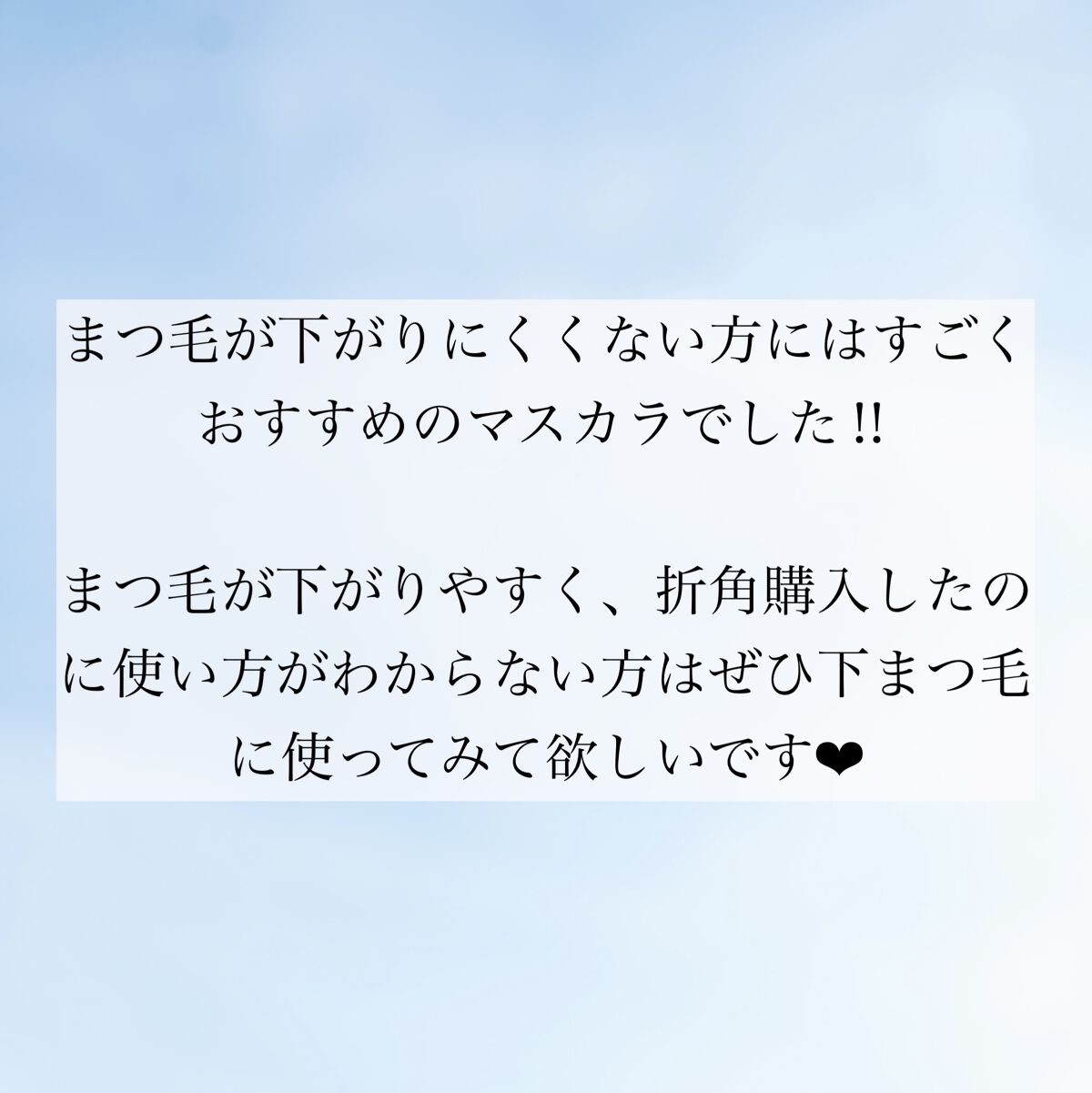 キープ力がとにかく高い!! →水に濡れても全然落ちないし、時間がたっても全然平気!!ディズニーとかでもおすすめ♡ 長さも出るし、ボリュームも出る! 色が可愛い♡→ブルベ向きの色かな!