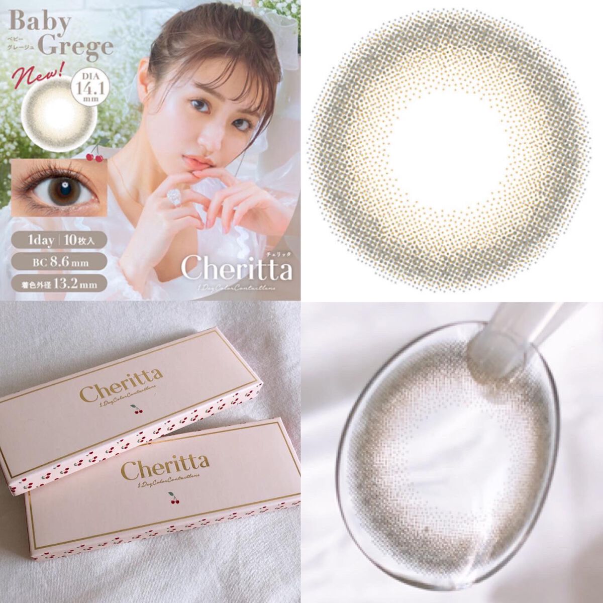 - “仕込む”ナチュラルメイク。 もっと自然に可愛くなりたい、そんなすべての女性へ。 Cheritta(チェリッタ)は、「イメチェンしたいけど変わりすぎるのは苦手」「ちょっとだけあか抜けたい」という全ての女性へ向け、メイクの過程にチェリッタを加えるだけで、いつもより自然に可愛くなれるナチュラルなデザインのカラーコンタクトレンズブランドです。 カラーコンタクトレンズの不適正使用による眼障害の危険性等などがあります。 ●コンタクトレンズは高度管理医療機器です。不十分な洗浄・消毒など不適切なケアや、長時間・交換期間を超えた装用により、アレルギー性結膜炎、角膜感染症、角膜潰瘍等の重篤な眼障害が発生する危険性があります ●ご使用前に取扱説明書を確認してください 使用上の留意事項 ●眼科医院等を受診してからお求めください ●眼に異常を感じたら直ちにレンズ使用を中止し、お近くの眼科等で診察を受けてください ●医師の指示にしたがってご使用ください ●コンタクトレンズを装用する場合、自覚症状がなくても、眼科医院等での定期検査を受けてください ●レンズに不具合がある場合は使用しないでください