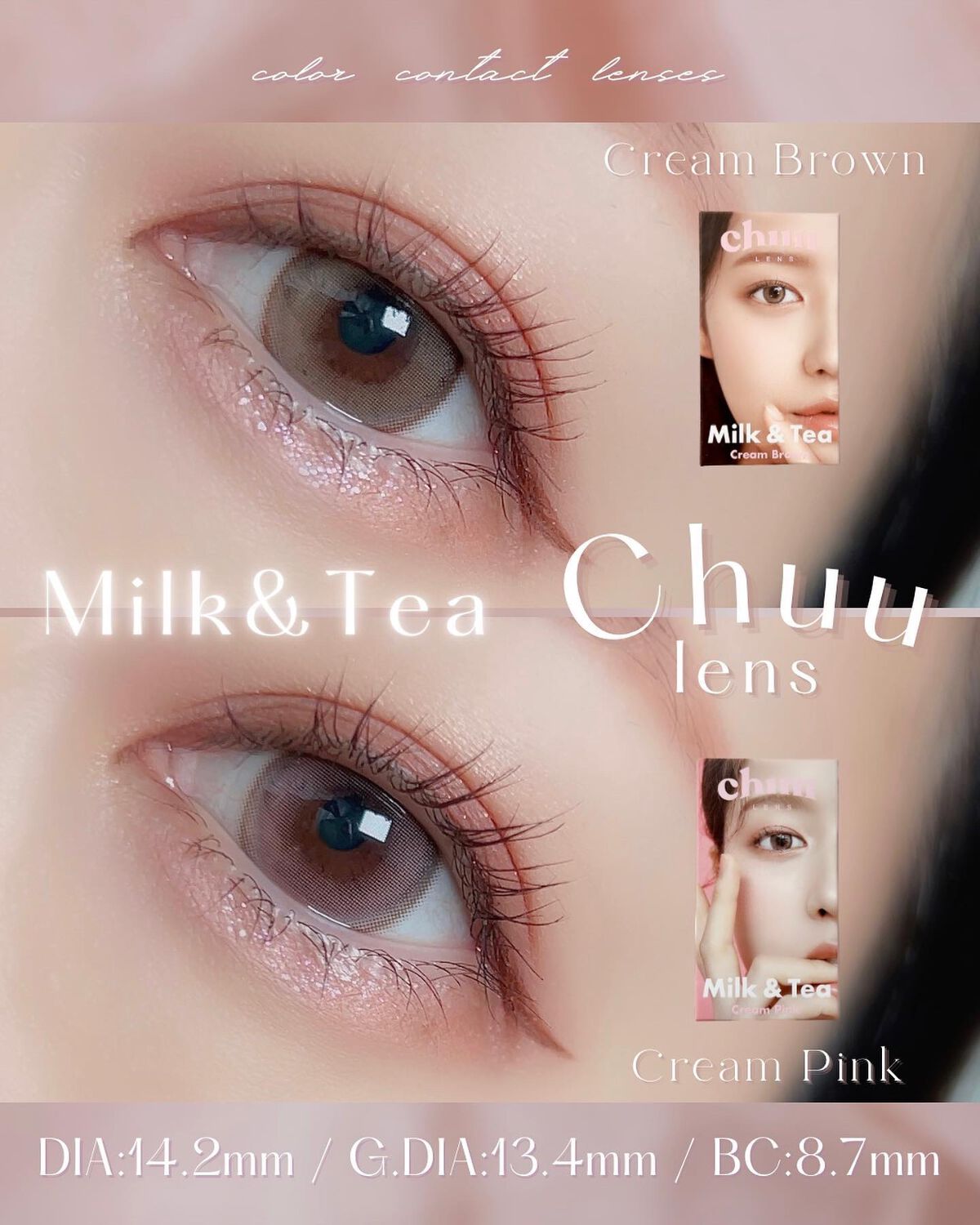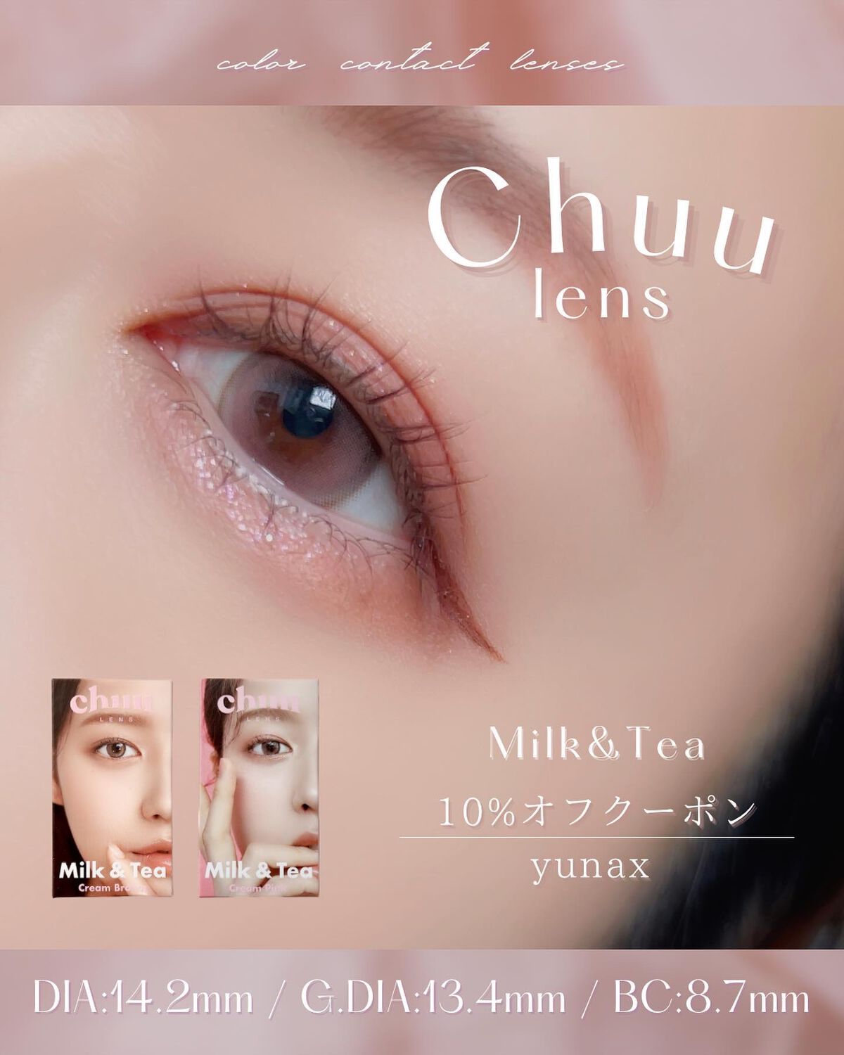 ため息がでるくらい可愛い、韓国カラコンブランドchuuLENS🥹👏🏻 ミルクアンドティーシリーズのクリームピンクをご紹介🐈⬛♡ ブラウン×ピンクの組み合わせで、とろけるような柔らかい発色でサクラのような可愛さ満開の瞳に👀💡🌸 着け心地も良かったです👌🏻 ̖́- 想像よりも使いやすいピンクで、ピンクカラコン初心者さんにも推し!