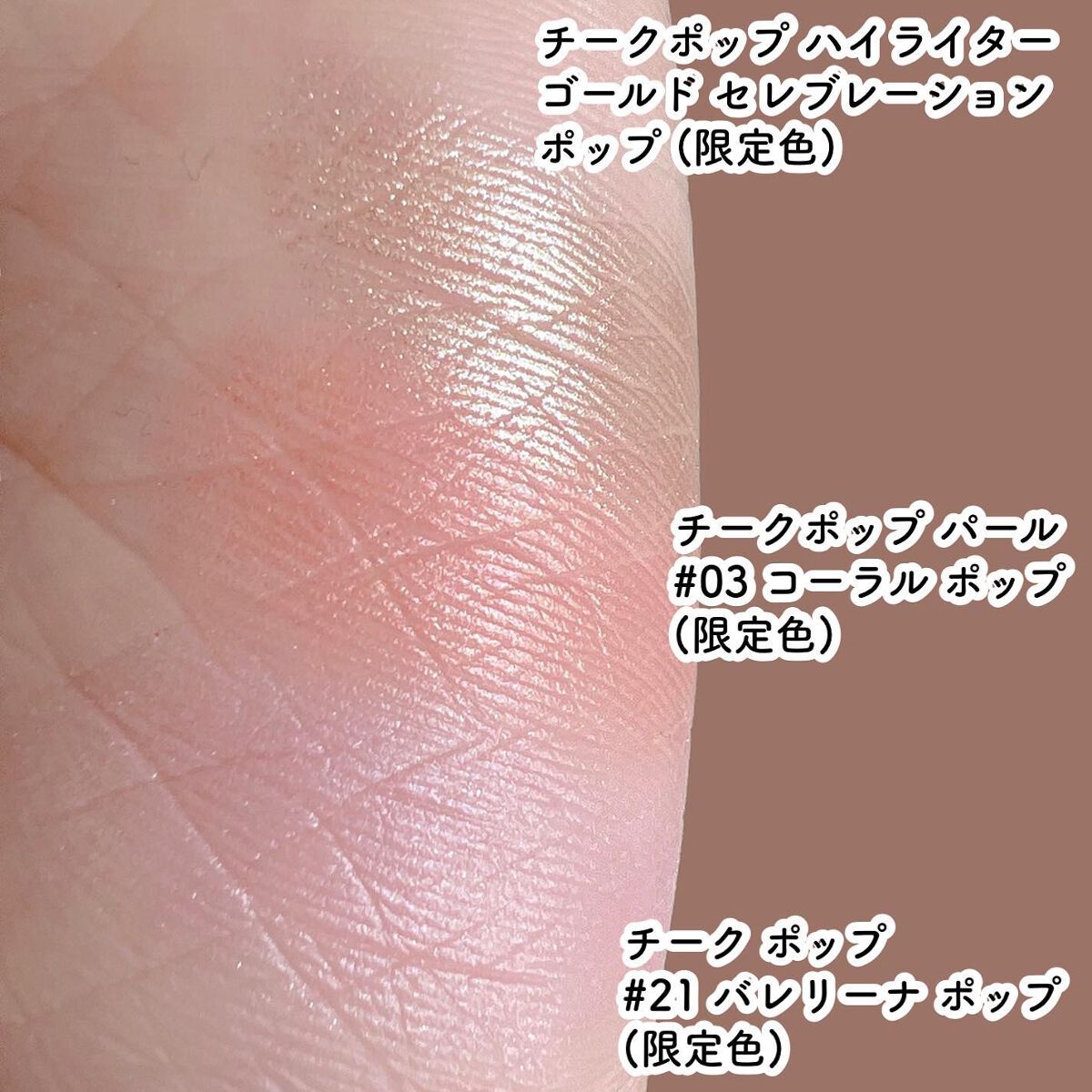 - 人気のチーク ポップから、今年もホリデイ 限定パレットが登場。 肌の透明感をアップさせるイノセントなピンクカラー、チーク×ハイライターのハイブリッドで、宝石のようなきらめきを纏う「チーク ポップ パール」から、血色感のあるオレンジ カラー、自然な立体感を演出する品のあるゴールドのハイライターの3色入り。 <内容> 〇チーク ポップ(ほほ紅) #21 バレリーナ ポップ (限定色) 〇チーク ポップ パール(ほほ紅) #03 コーラル ポップ(限定色) 〇チーク ポップ ハイライター(フェースカラー) #ゴールド セレブレーション ポップ (限定色)