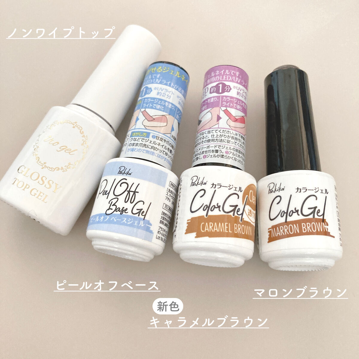 ローズブラウンだけこの中だとすこし透明感が低い色 落ち着いたカラーで使いやすいです 他2つはクリア度が高い色ですベースカラーが透明のままだと 自爪の色が透けてもっとピンクぽさが強く出ます ベース:セリア ピールオフベース トップ:ネイルタウン irogel グロッシートップ (ノンワイプトップ)