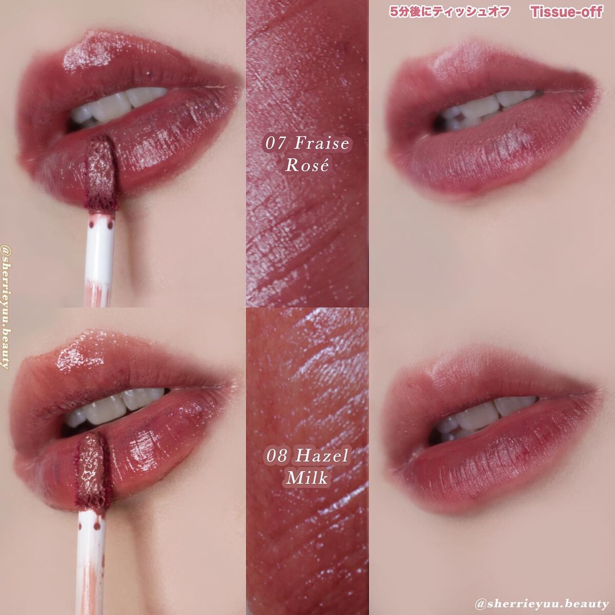 ♡オイルinウォーター処方で、みずみずしい濡れツヤ感のある仕上がりに💧✨唇に密着するので、色持ちが結構良くなります! ♡ティントタイプなので唇に色が定着して落ちにくく、時間が経ってもボロボロと崩れることもありません!綺麗な発色が長時間楽しめます! ♡重ねればしっかり発色してくれます! ♡高保湿力💧美容保湿成分配合されているので、乾燥感がありません🥰 ♡みずみずしいテクスチャーで、透け感のあるリップになります✨ベタつきません! 全7色あります!肌なじみのいいカラーなので普段使いしやすい色味です🥰シアーなツヤ感と発色が可愛いです✨新色「06 ピンクベージュ」と「07 ビターレッド」は深みのあるブラウン系カラーです☺️色味がおしゃれで可愛すぎます❣️
