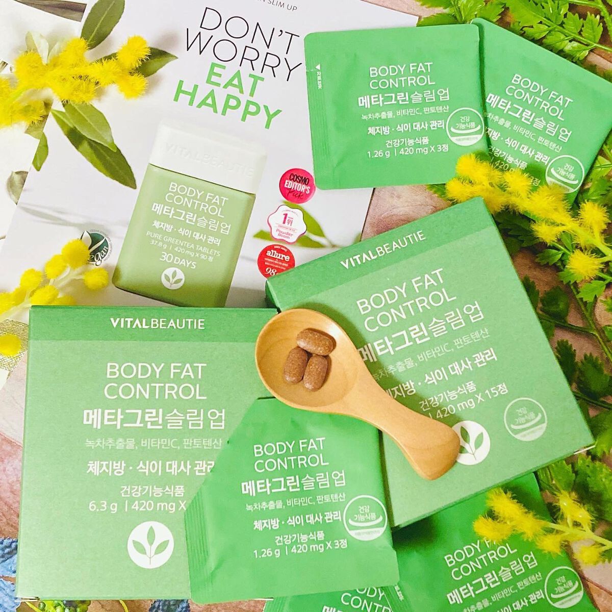 ✿バイタルビューティー✿メタグリーンスリムアップ30日分オリーブヤング健康機能食品1位*を獲得した脂肪燃焼サプリ💊体脂肪の減少を手伝ってくれる緑茶カテキンが高配合されていて、食事後の脂肪の吸収を抑えて排出を手伝ってくれる商品✨️食後に1日2粒...