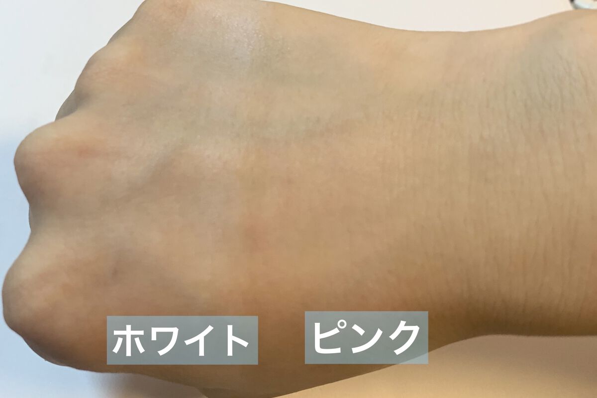その名の通り、トーンアップ効果があります。 白は私が塗るとよく馴染ませないと白浮きしてしまいましたが、ピンクは自然な血色感があり、肌馴染みがよかったです。 塗るとサラサラして、今の季節だと少し乾燥してしまうので、夏に使うか、鼻やおでこなどのテカる部分にのせています。 日焼け止めとして、これとパウダーだけで外に出ることもありますが、崩れもなく、お気に入りです!