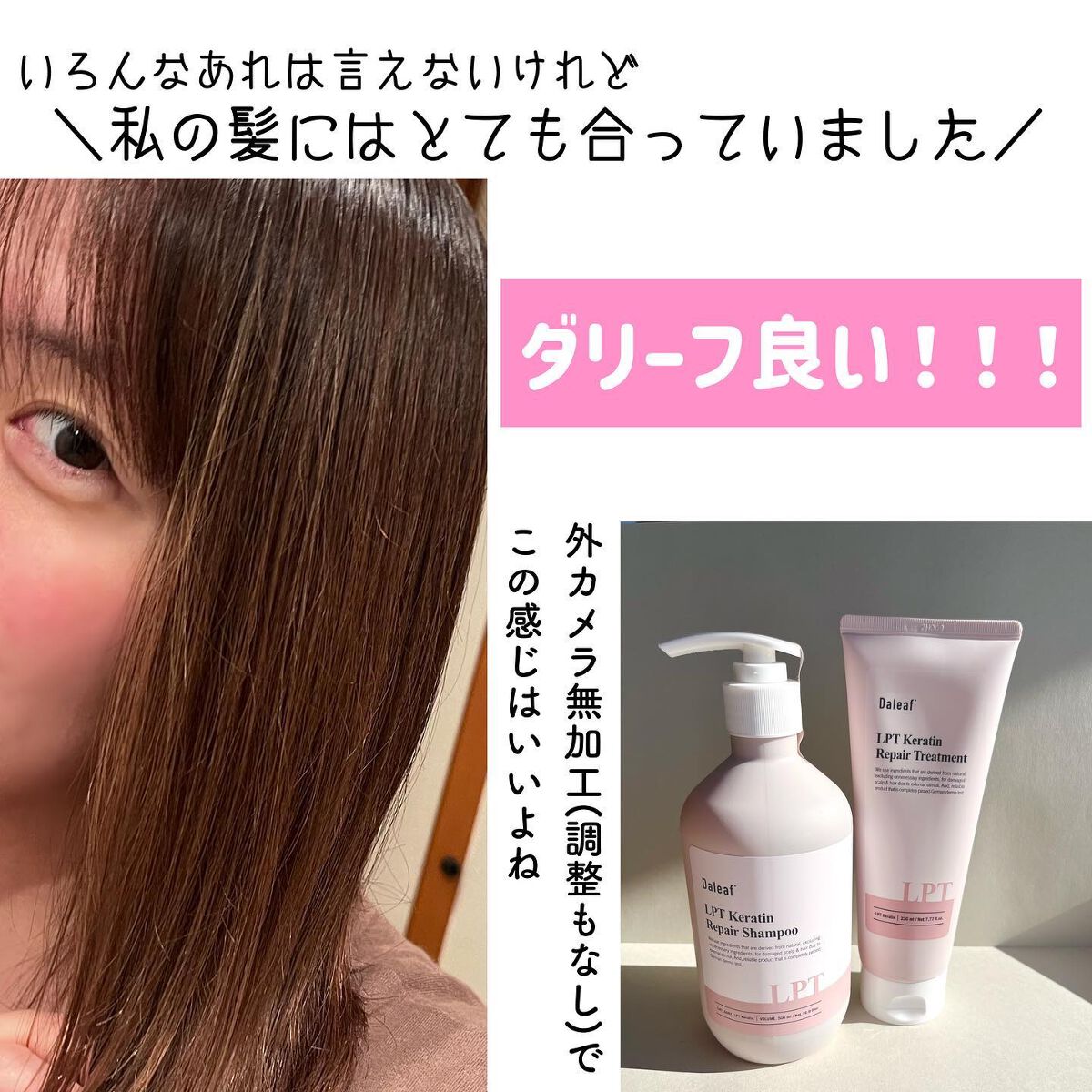 Daleaf(ダリーフ)様より「LPTケラチンリペアシャンプー/トリートメント」をいただきました。すでに人気のあるLPTケラチンシリーズですが、今回はパッケージがよりシンプルに可愛くなったようです。こちらは2種のタンパク質*1を配合するこ...