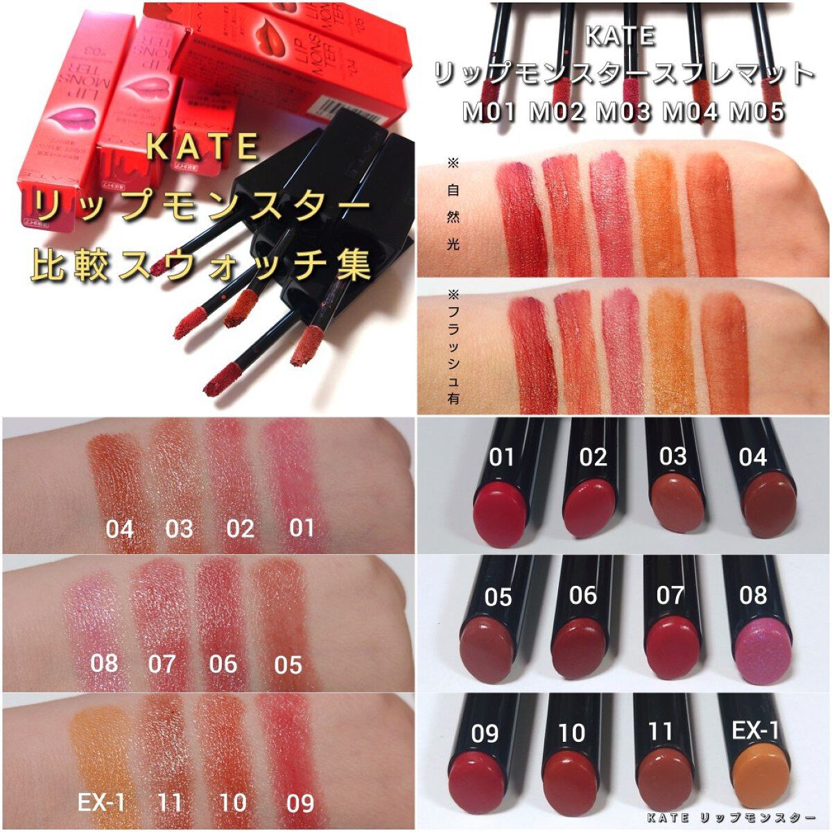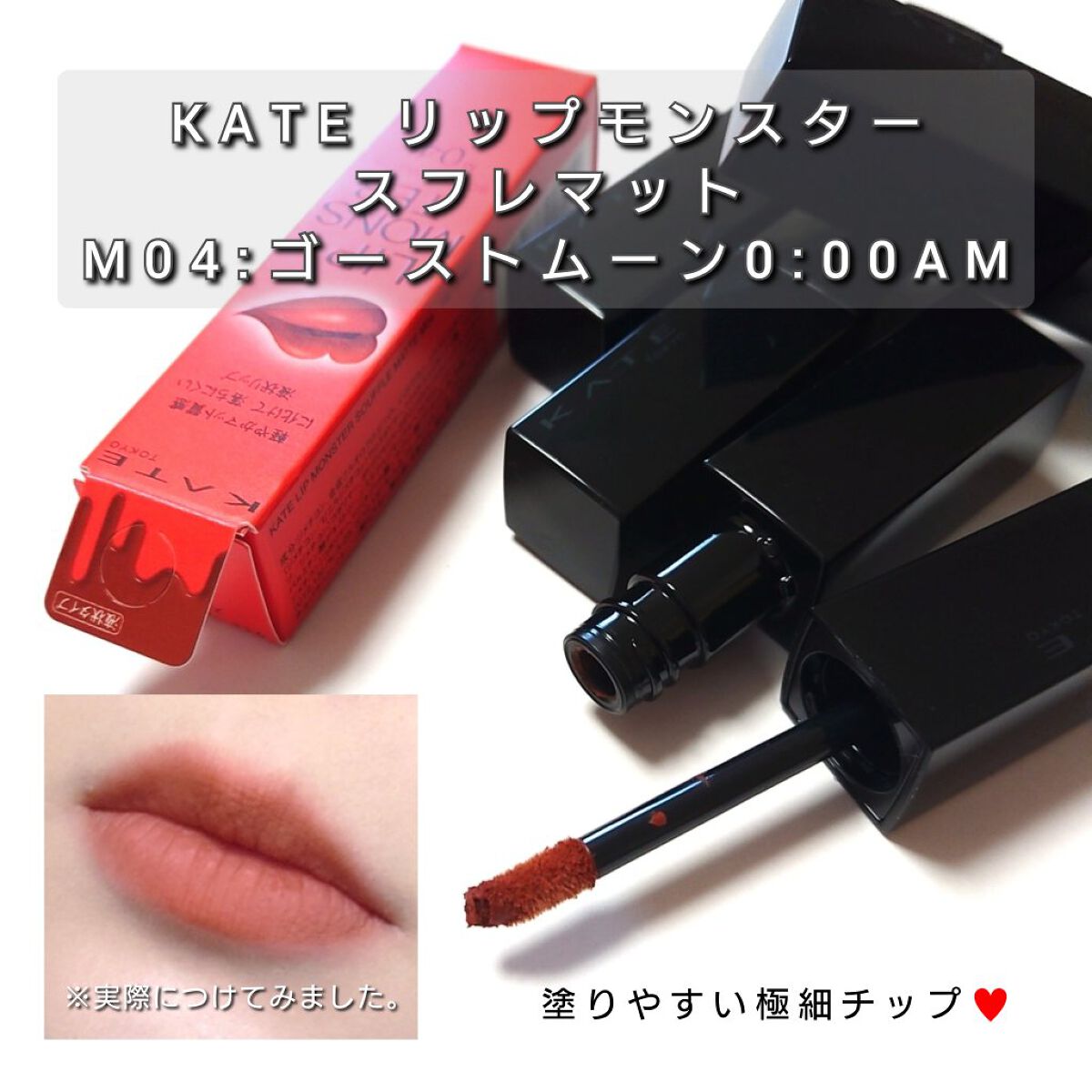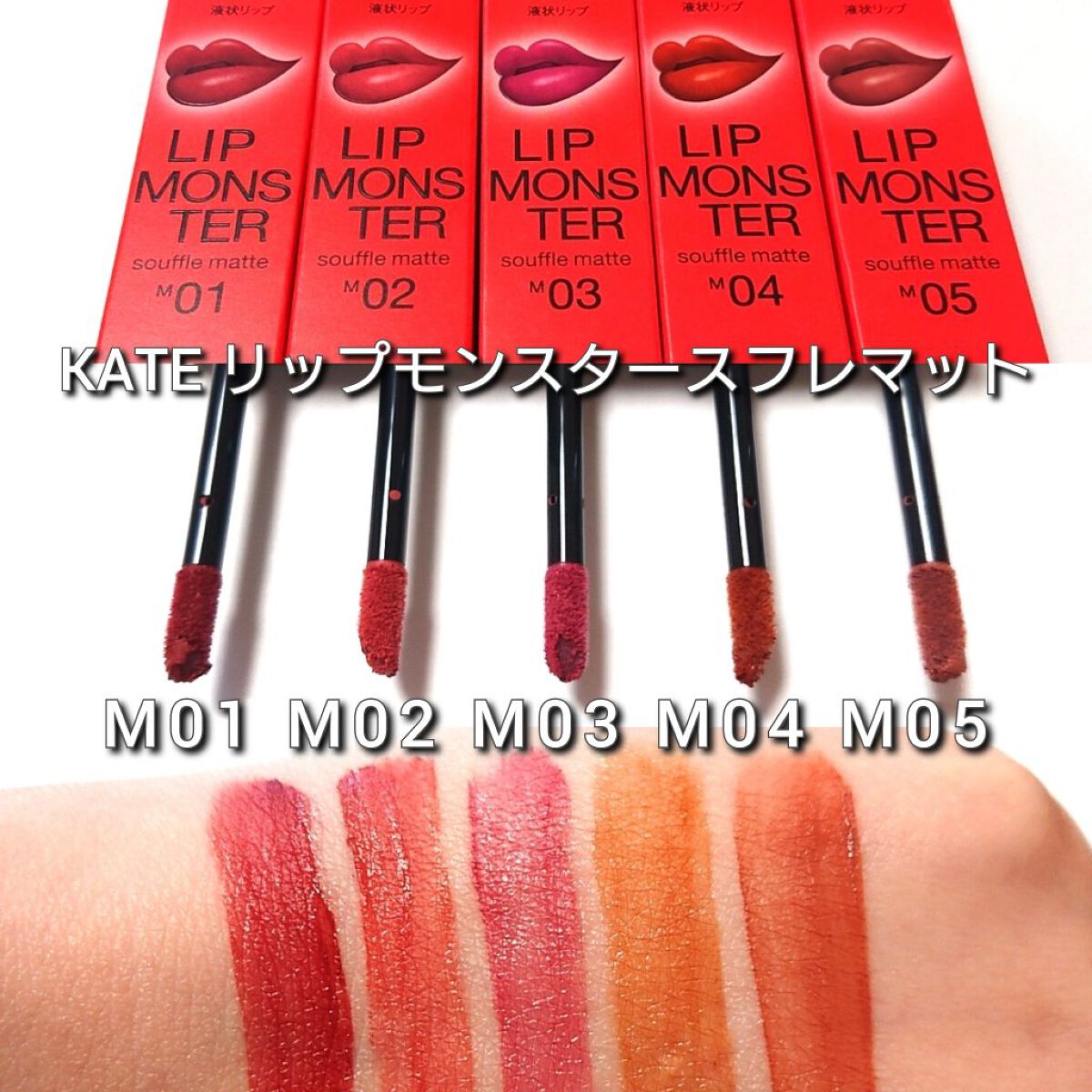 #提供❁.˚‧º‧‧º·˚.❁ リプモン スフレマット 4色スウォッチ❁.˚‧º‧‧º·˚.❁KATEリップモンスタースフレマットをお試し✧*˚₊‧ੈ✩おすすめポイントੈ✩‧₊˚*⋆つけたての色が長時間持続⋆ふんわりマット質感に変化する落...