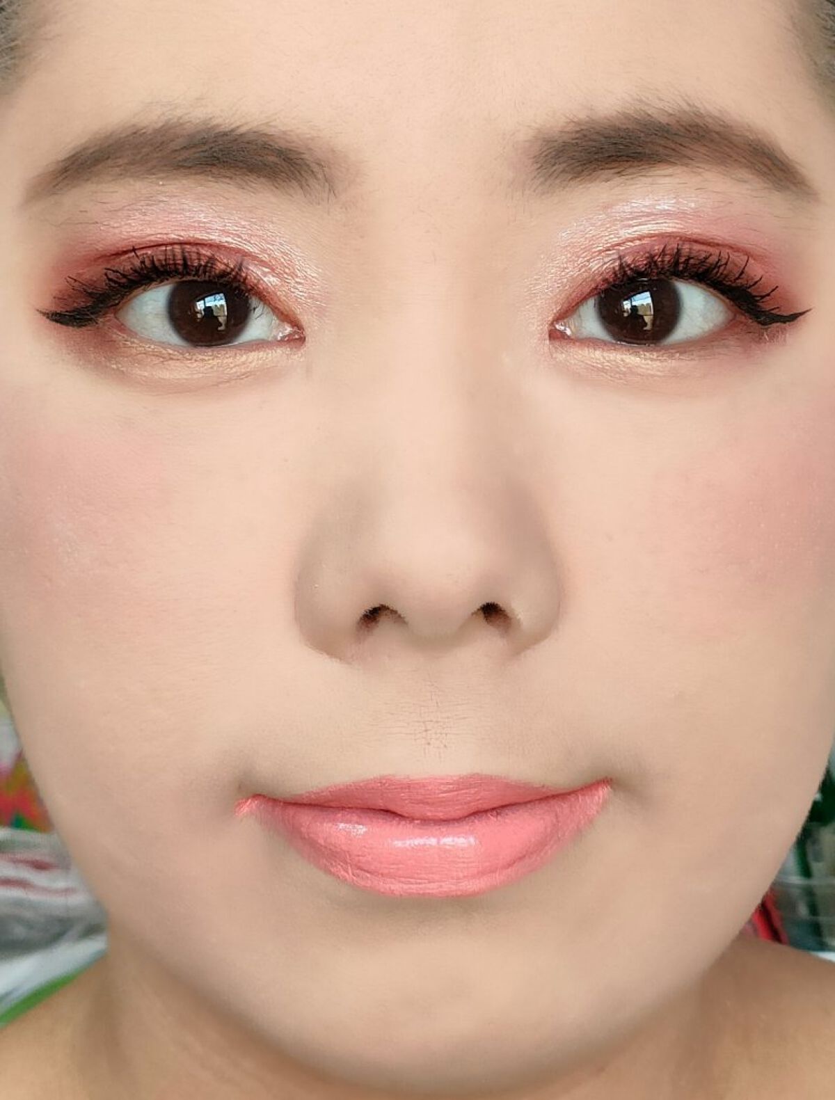 アイシャドウパレットは、UR GLAM アイシャドウパレットを、使用しました。 リップは、M・A・C リップスティック ピーチストックを、唇全体にまんべんなく塗ります。