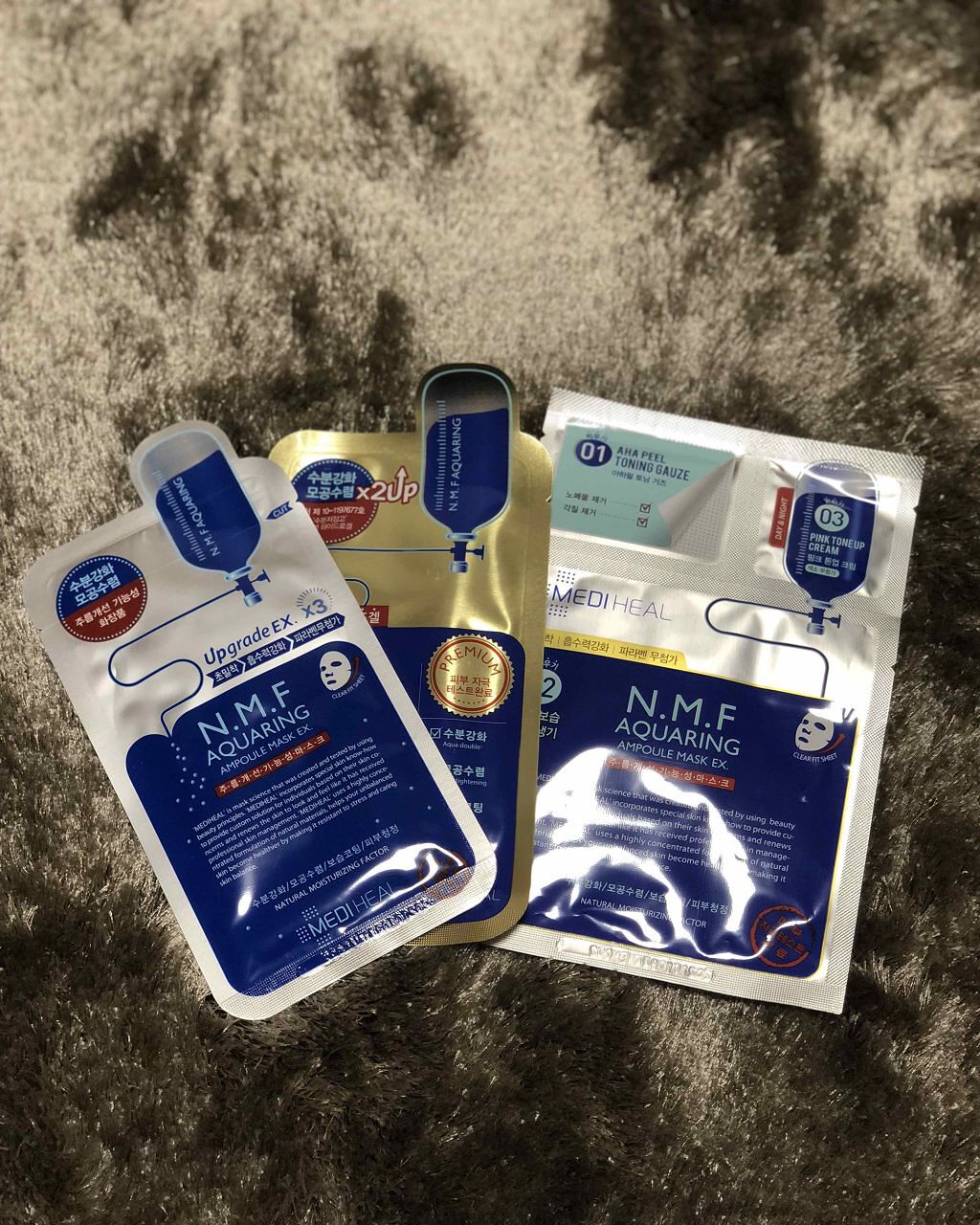 MEDIHEALのN.M.FアクアアンプルマスクJEX(Jと書いてあるのは日本版、だそう)。とにかくマスクシートが好き!!顔のサイズにちょうど良い!!目周りも、おでこも、顎も。日本人の顔の形にあわせてくれたのかなと。シートにブランドロゴが書い...